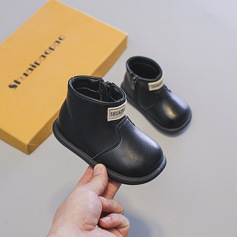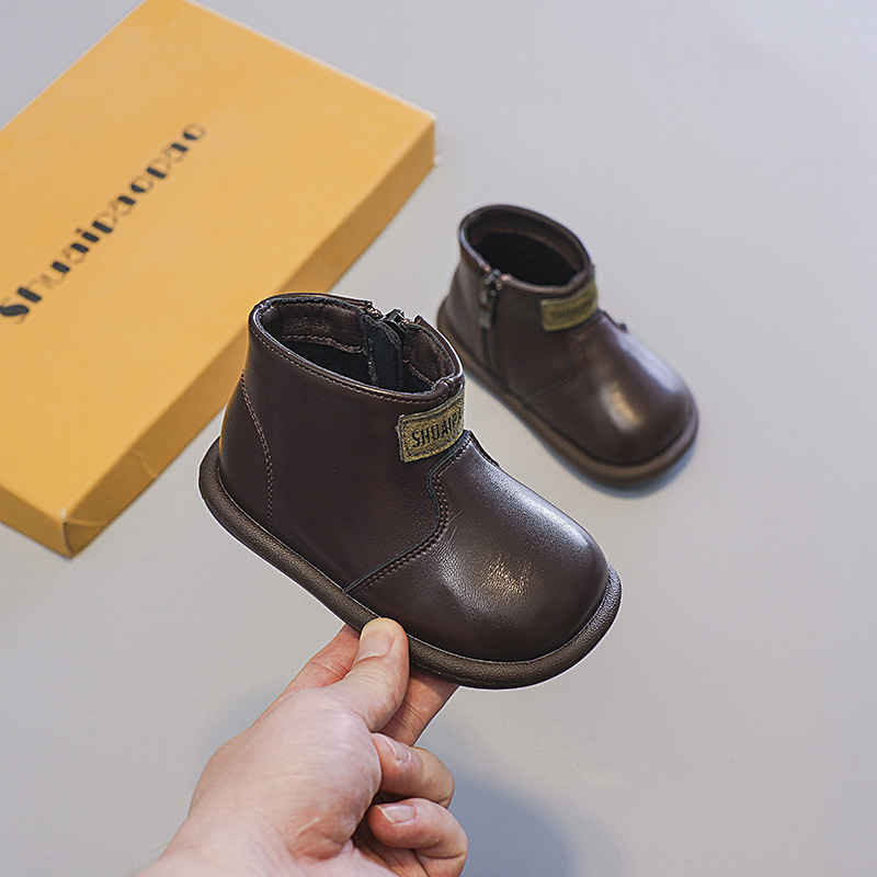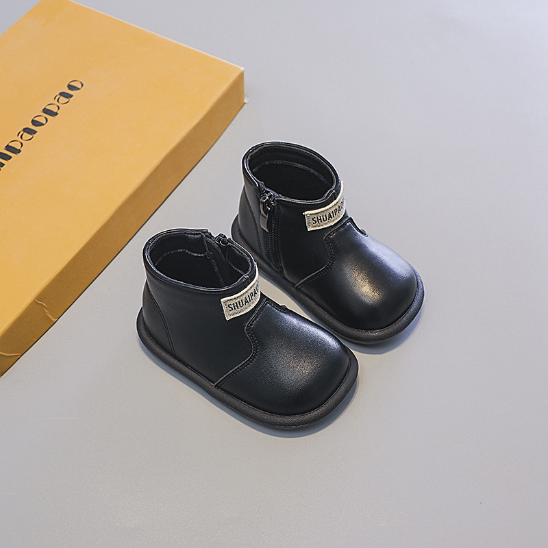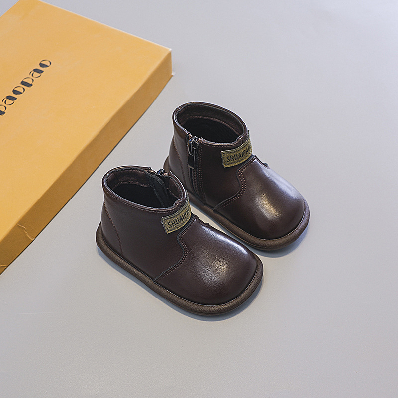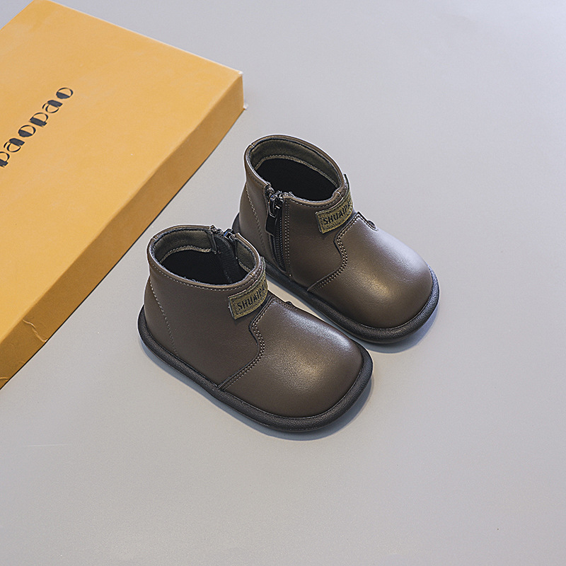 영국 스타일 어린이 캐주얼 간단한 사이드 지퍼 작은 가죽 부츠 새로운 스타일 소년과 소녀 경량 편안한 소프트 하단 올 매치 싱글 핀 부츠