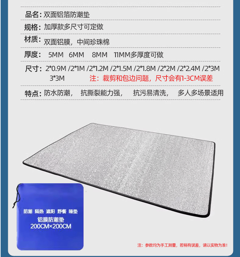 방습 캠핑 매트 점심시간 학생 기숙사 방습 매트 텐트 양면 알루미늄 호일 캠핑 매트 두꺼운 방습