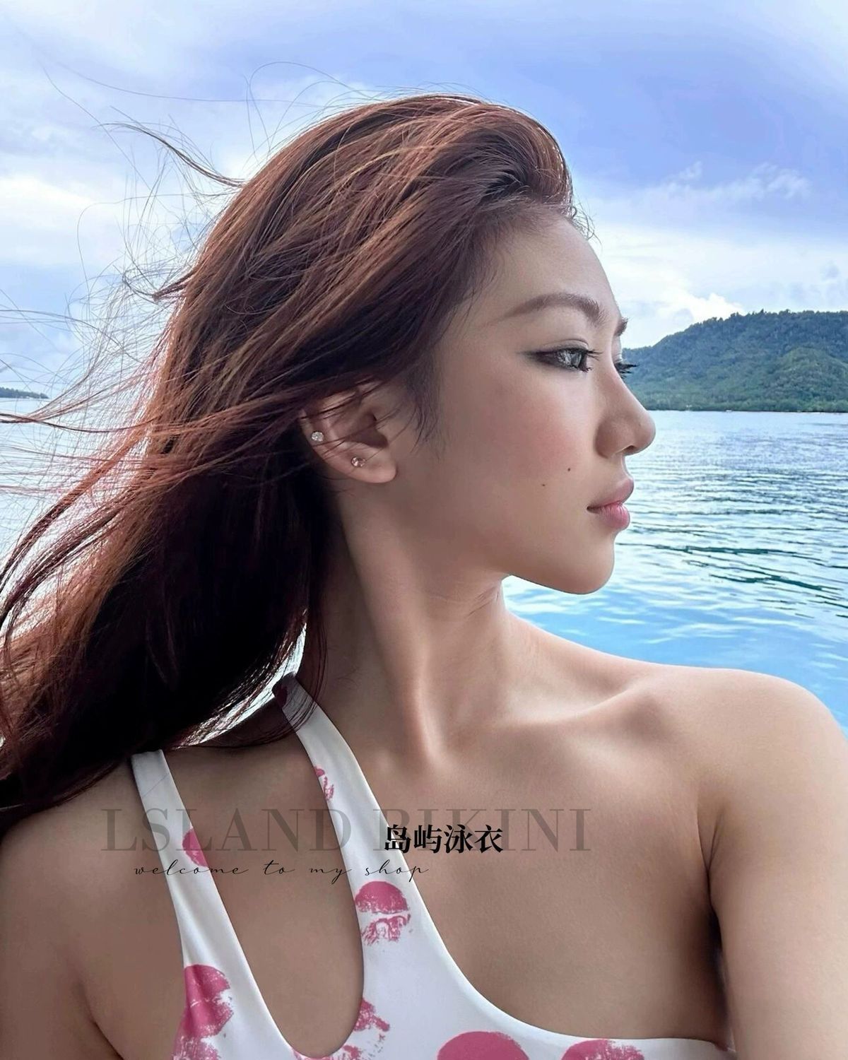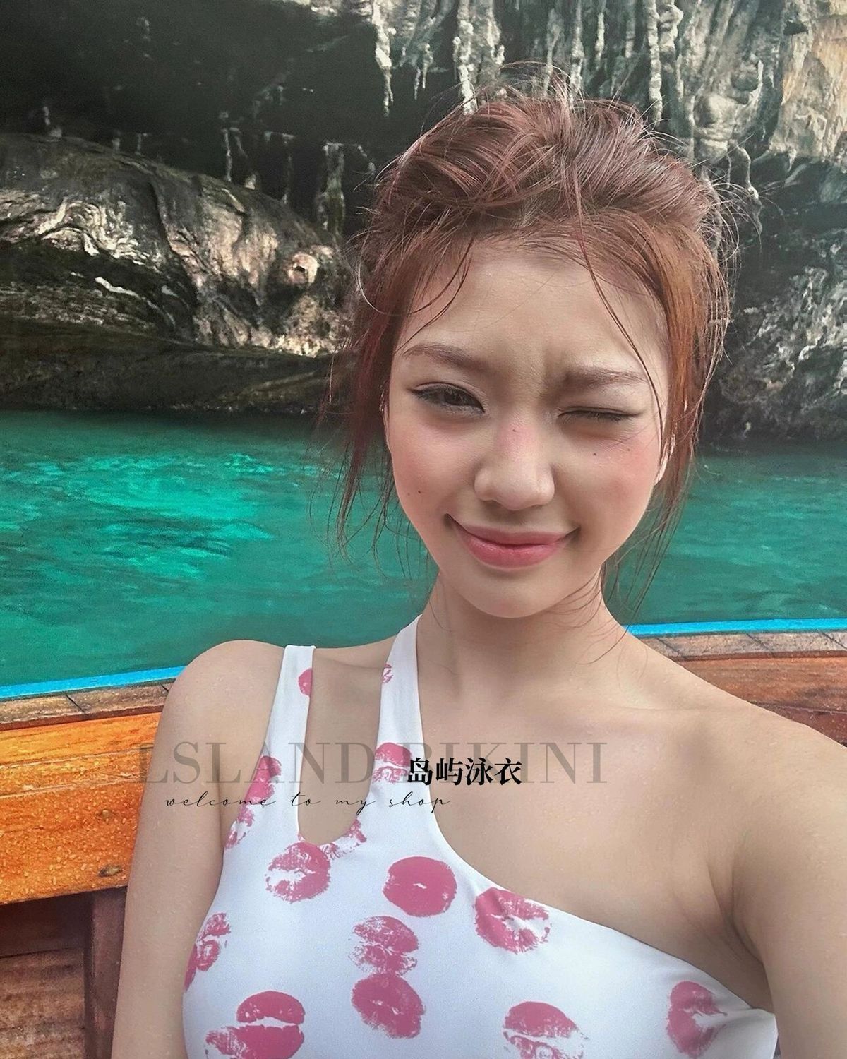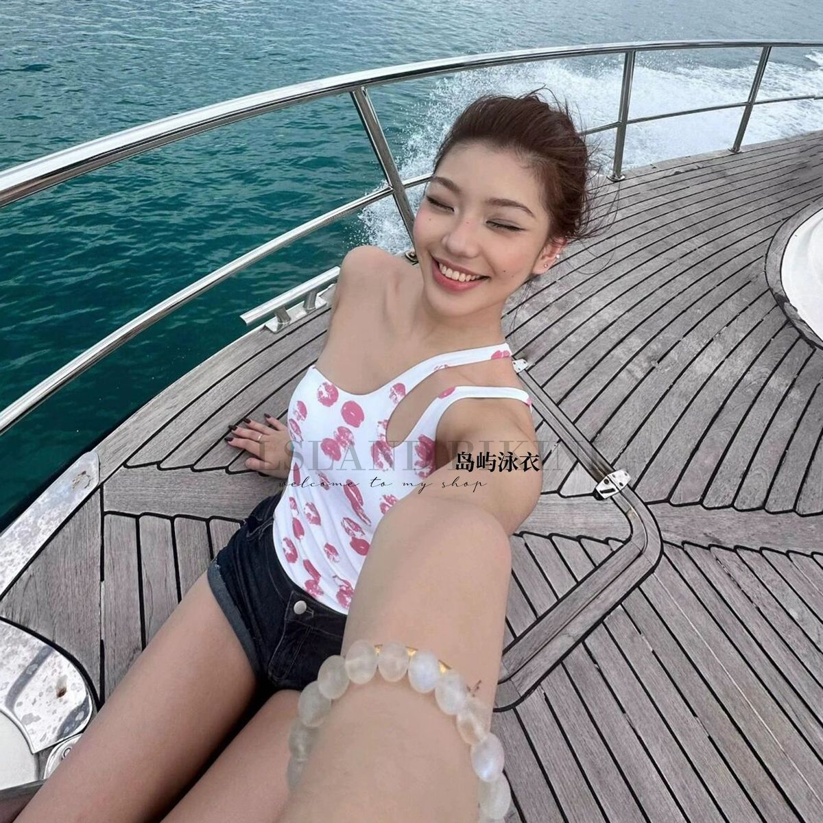 프렌치 레트로 로맨틱 립 프린트 섹시한 원 숄더 수영복 여성 2024 년 여름 뉴 벨리 커버 슬림 수영복스토어 가기