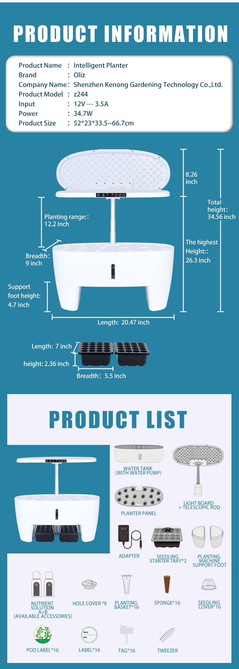 • 흰색*16 구멍*Z244 지능형 재배 기계 + 묘목 기능