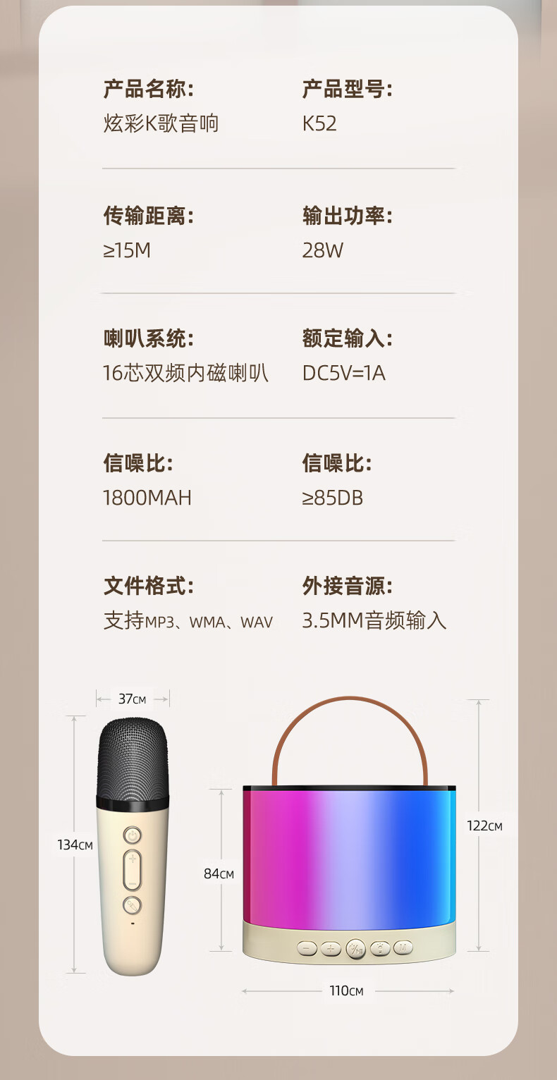 K52 블루투스 스피커 가족 노래방 마이크 미니 대용량 긴 배터리 RBG 다채로운 빛 블루투스 스피커