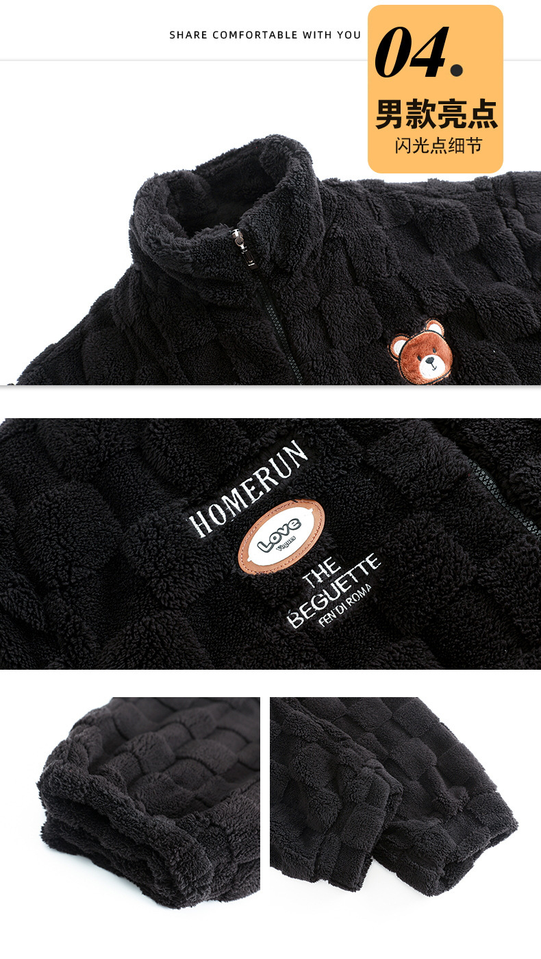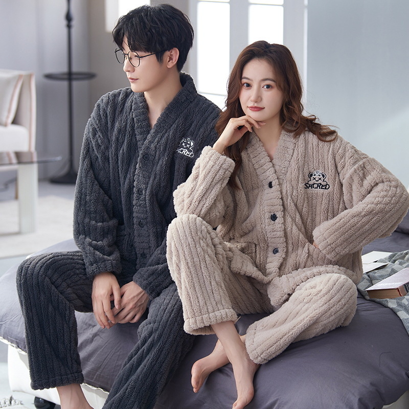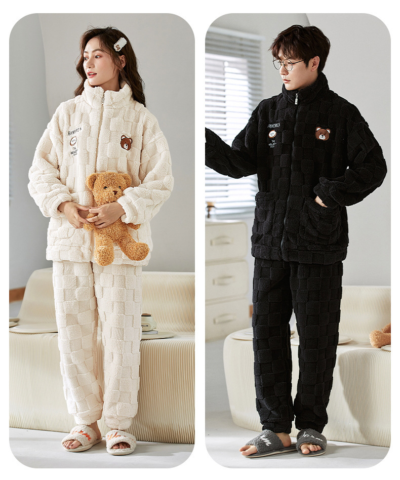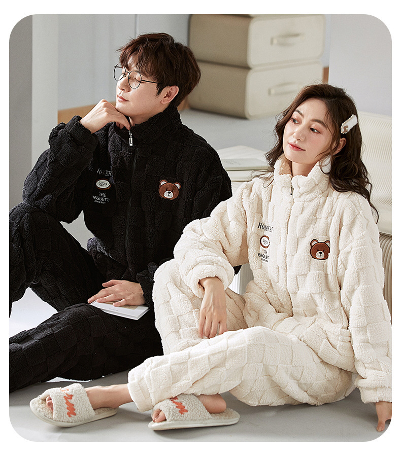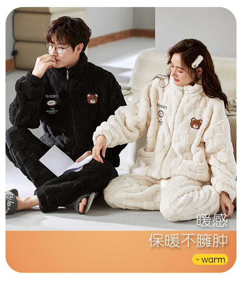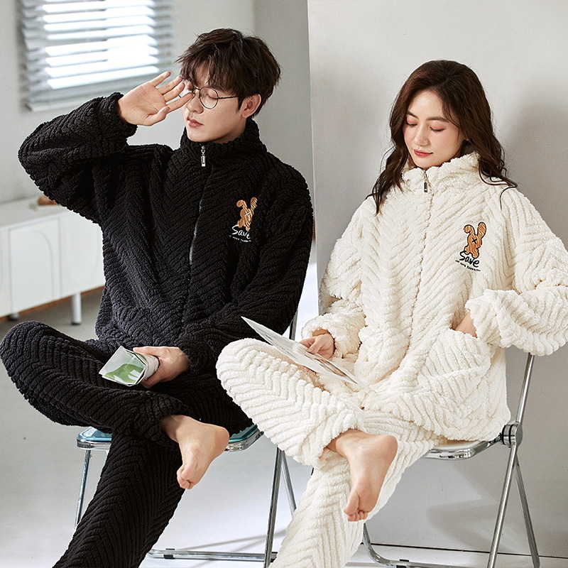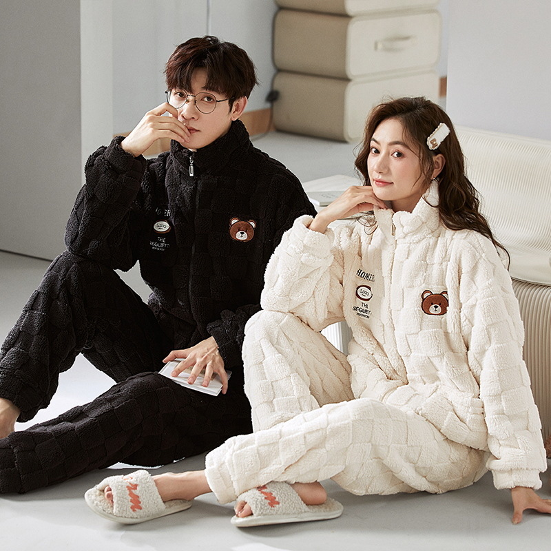 가을과 겨울 곰 커플 잠옷 여성 따뜻한 벨벳 지퍼 카디건 플란넬 남자 기모 두꺼운 산호 벨벳