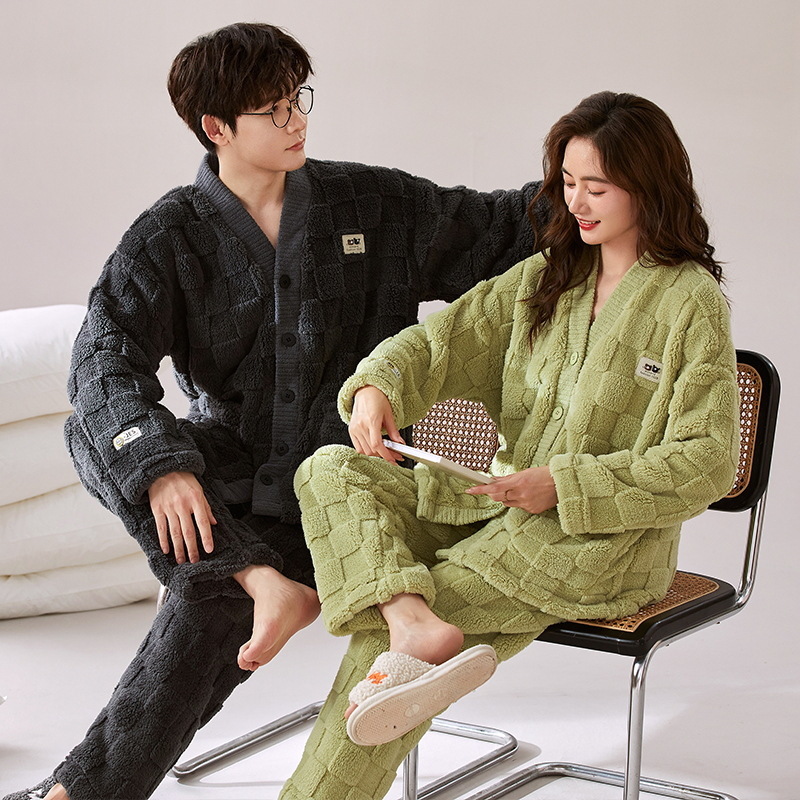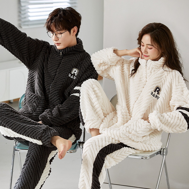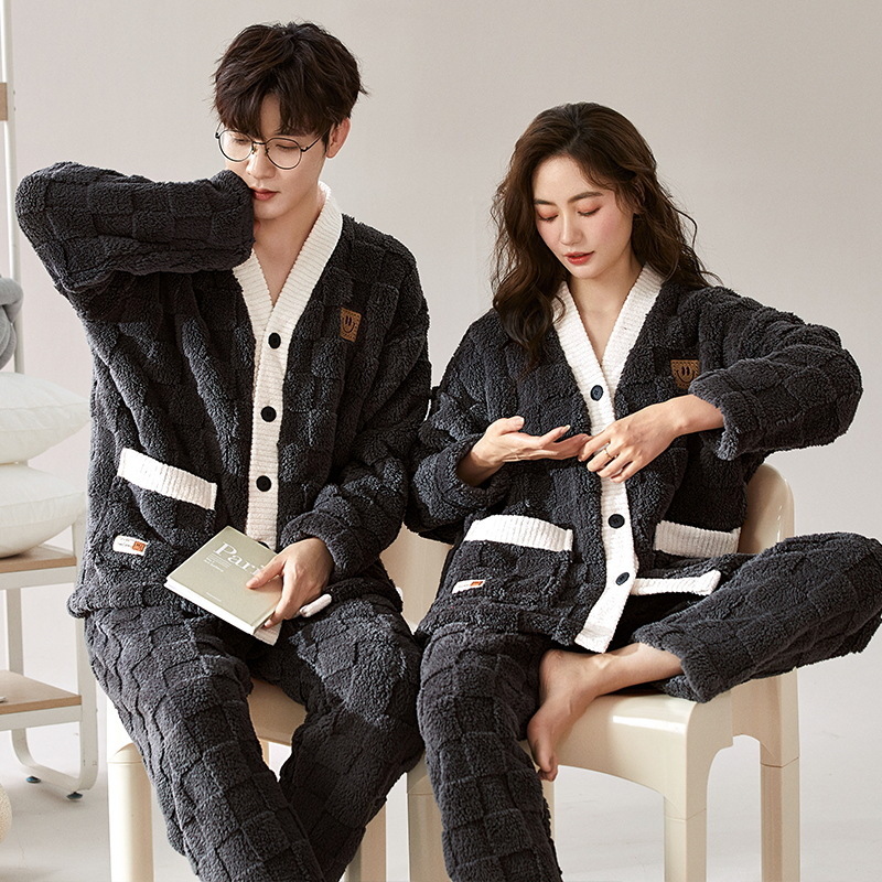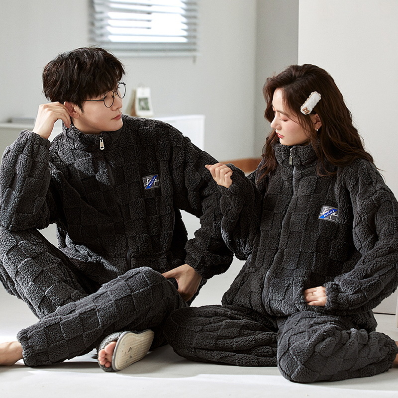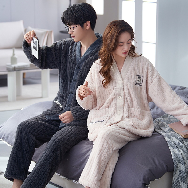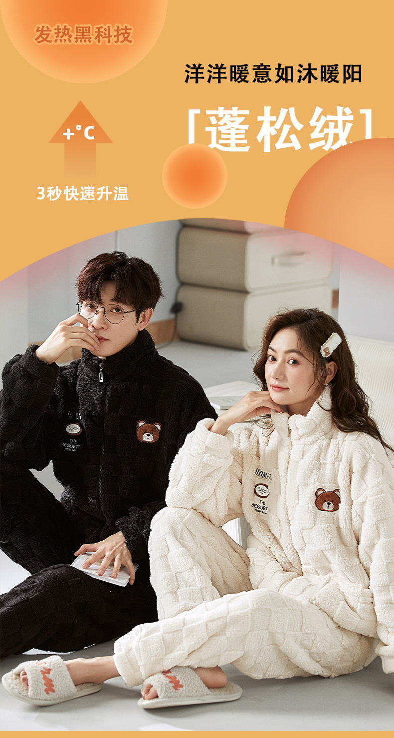 가을과 겨울 곰 커플 잠옷 여성 따뜻한 벨벳 지퍼 카디건 플란넬 남자 기모 두꺼운 산호 벨벳