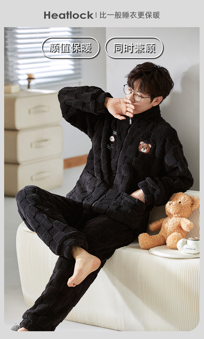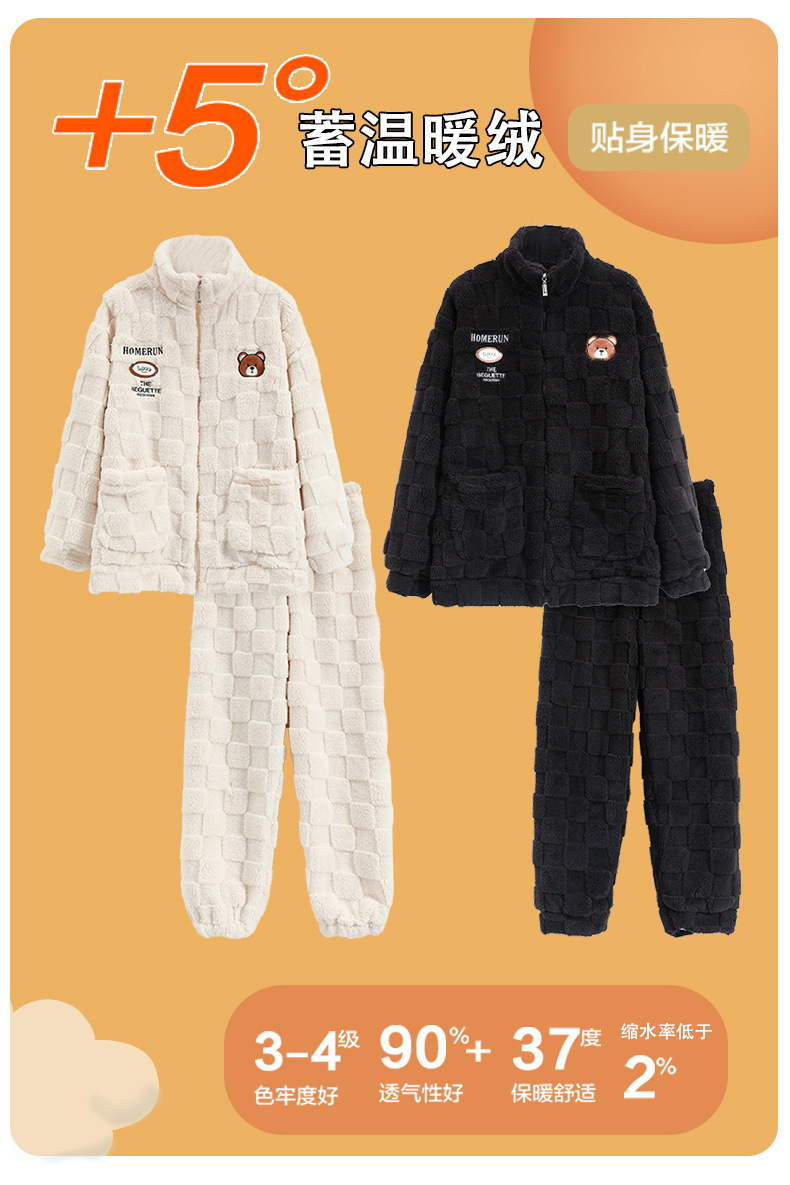 가을과 겨울 곰 커플 잠옷 여성 따뜻한 벨벳 지퍼 카디건 플란넬 남자 기모 두꺼운 산호 벨벳스토어 가기