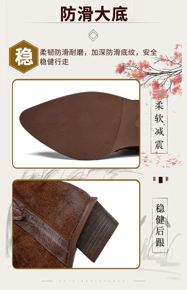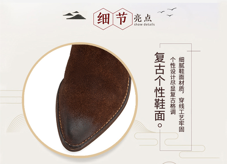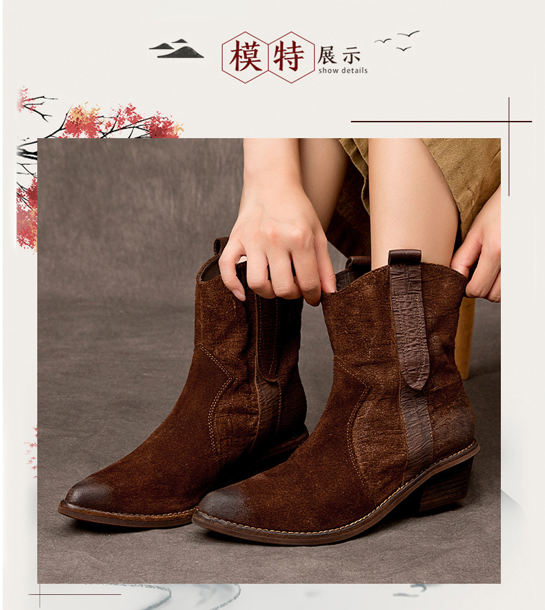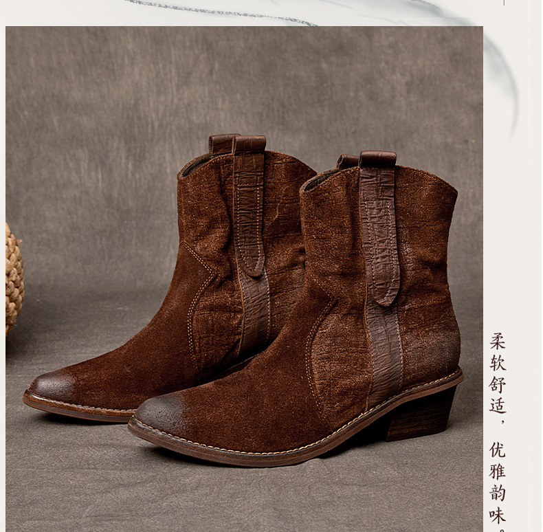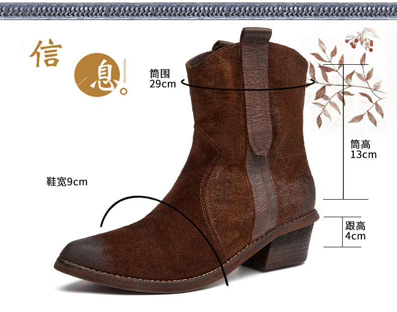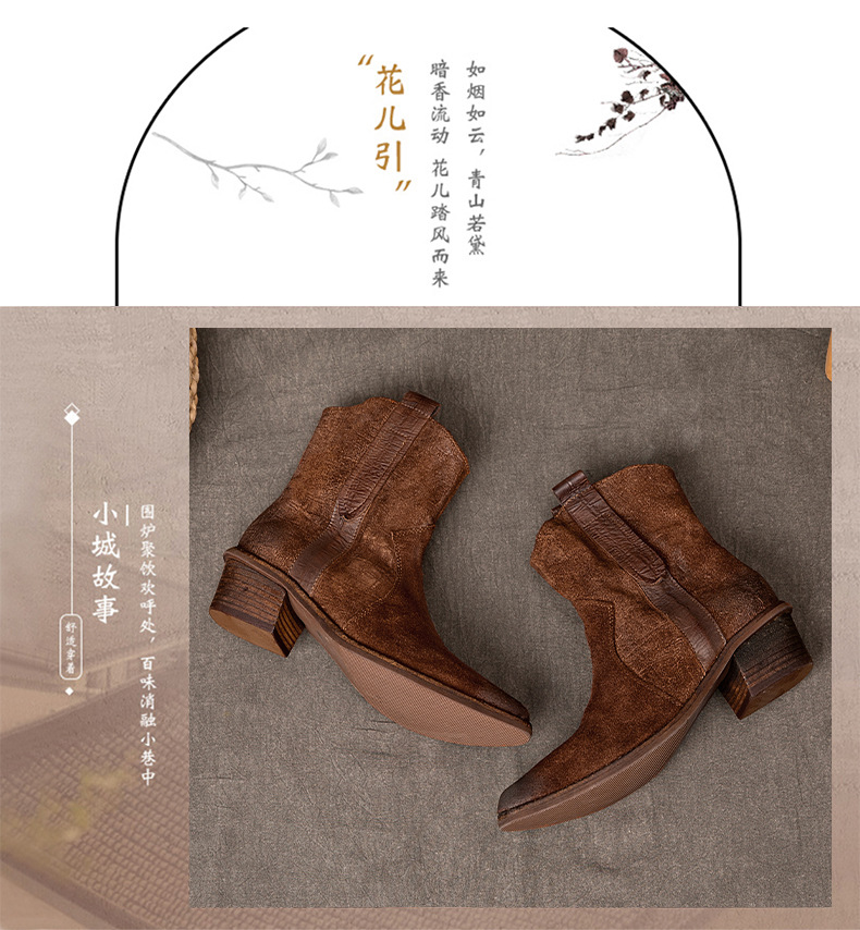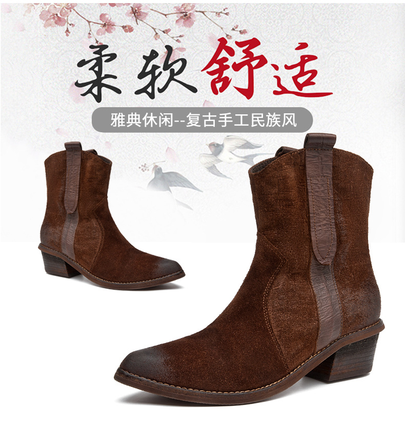 2025 새로운 가을, 겨울 정품 가죽 마틴 부츠 패션 중간 굽 뾰족한 말 가죽 여성 부츠 서양 카우보이 스타일 짧은 부츠 하이 엔드스토어 가기
