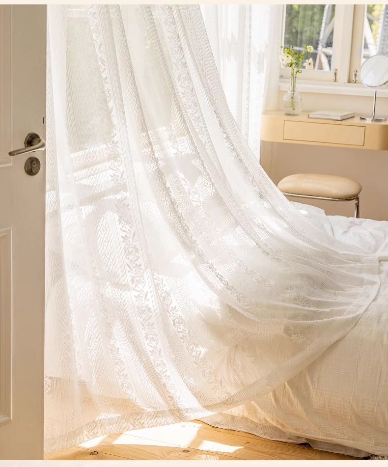 커튼 거즈 제조업체 직물 도매 완제품 국경 간 대외 무역 창 스크린 판타지 프랑스 레이스 거즈 트리코 거즈 흰색 거즈스토어 가기