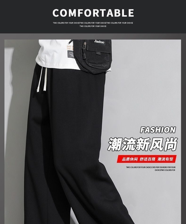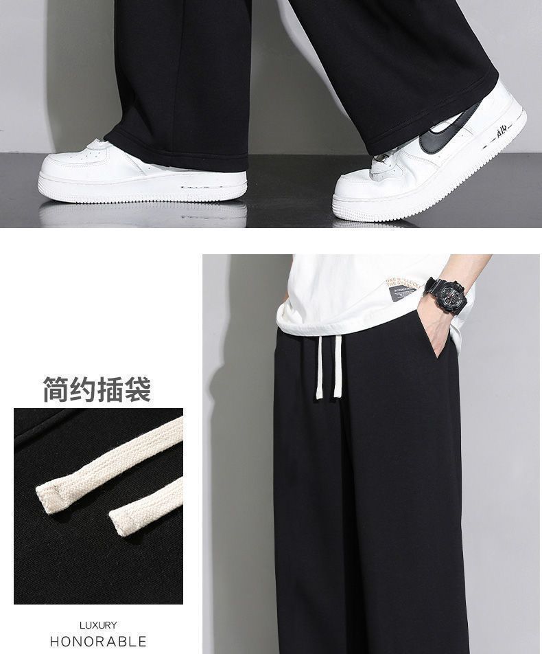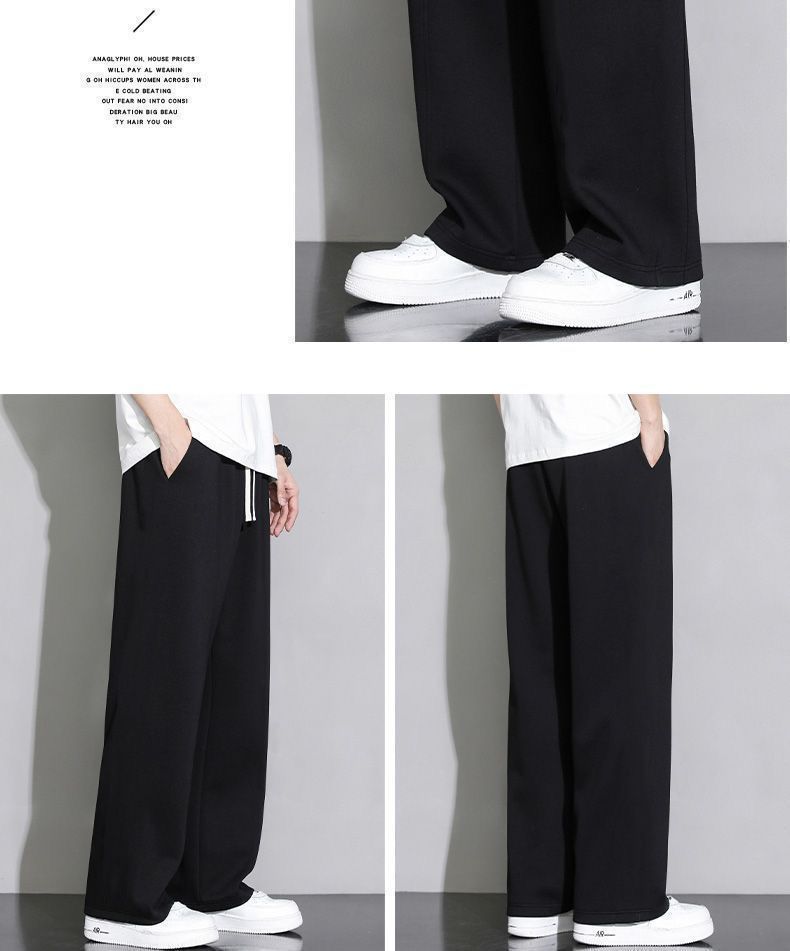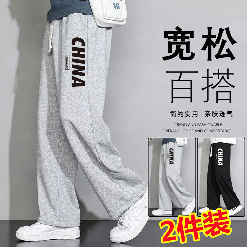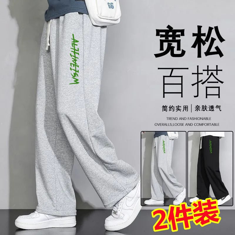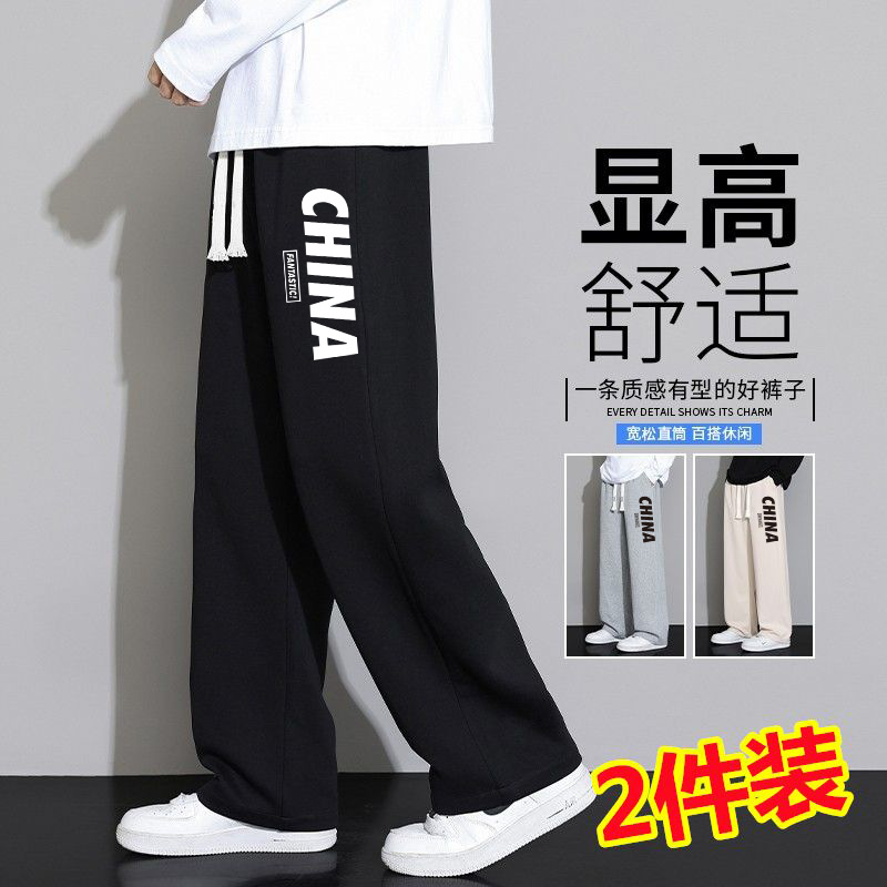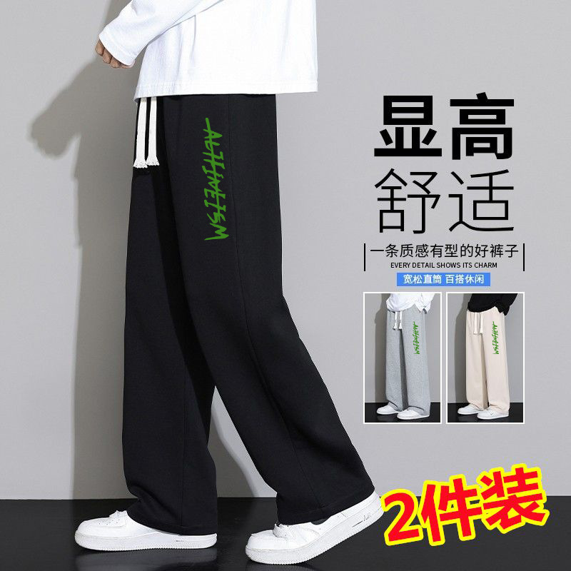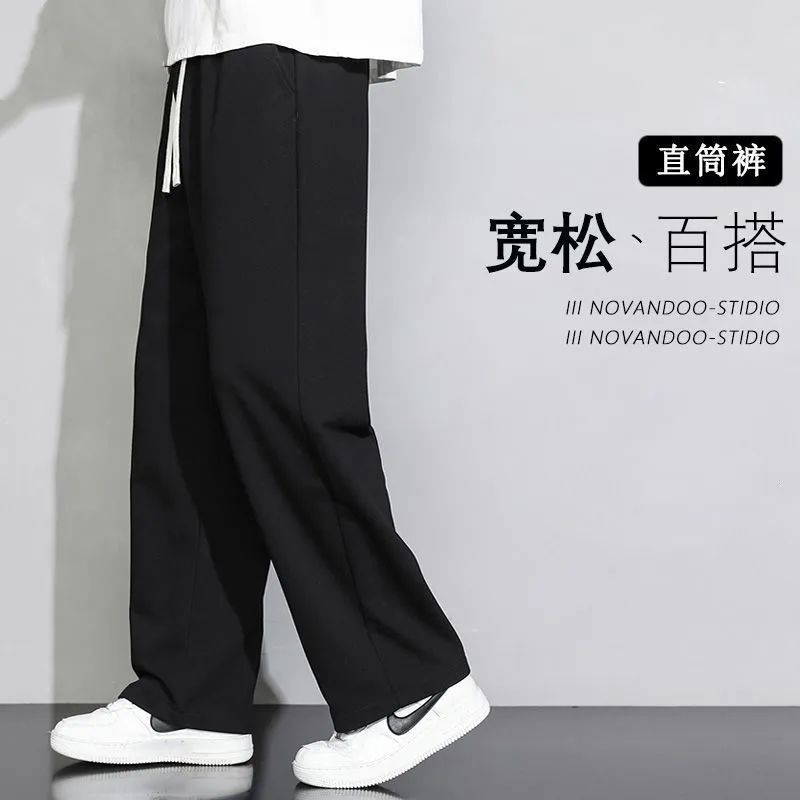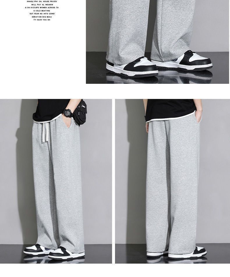 회색 땀 바지 남자의 봄과 가을 2024 새로운 패션 브랜드 넓은 다리 투약 느슨한 스트레이트 바지 캐주얼 스포츠 바지스토어 가기