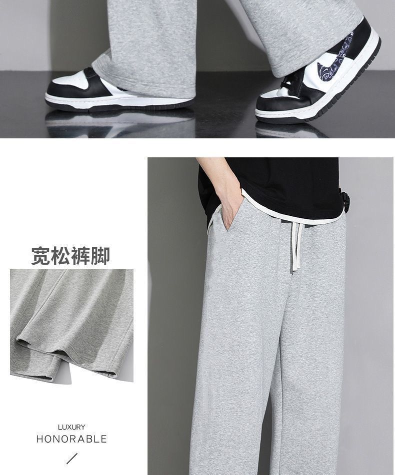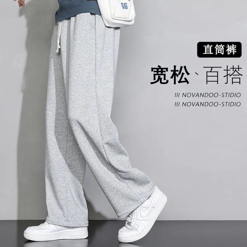 회색 땀 바지 남자의 봄과 가을 2024 새로운 패션 브랜드 넓은 다리 투약 느슨한 스트레이트 바지 캐주얼 스포츠 바지