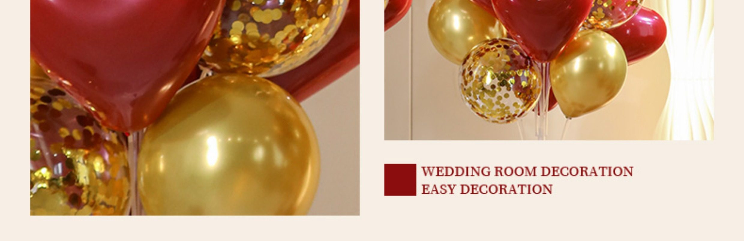• 바닥에 떠다니는 활 2세트 [석류 레드 하트 10개 + 메탈릭 로즈 골드 10개 + 골드 스팽글 10개]