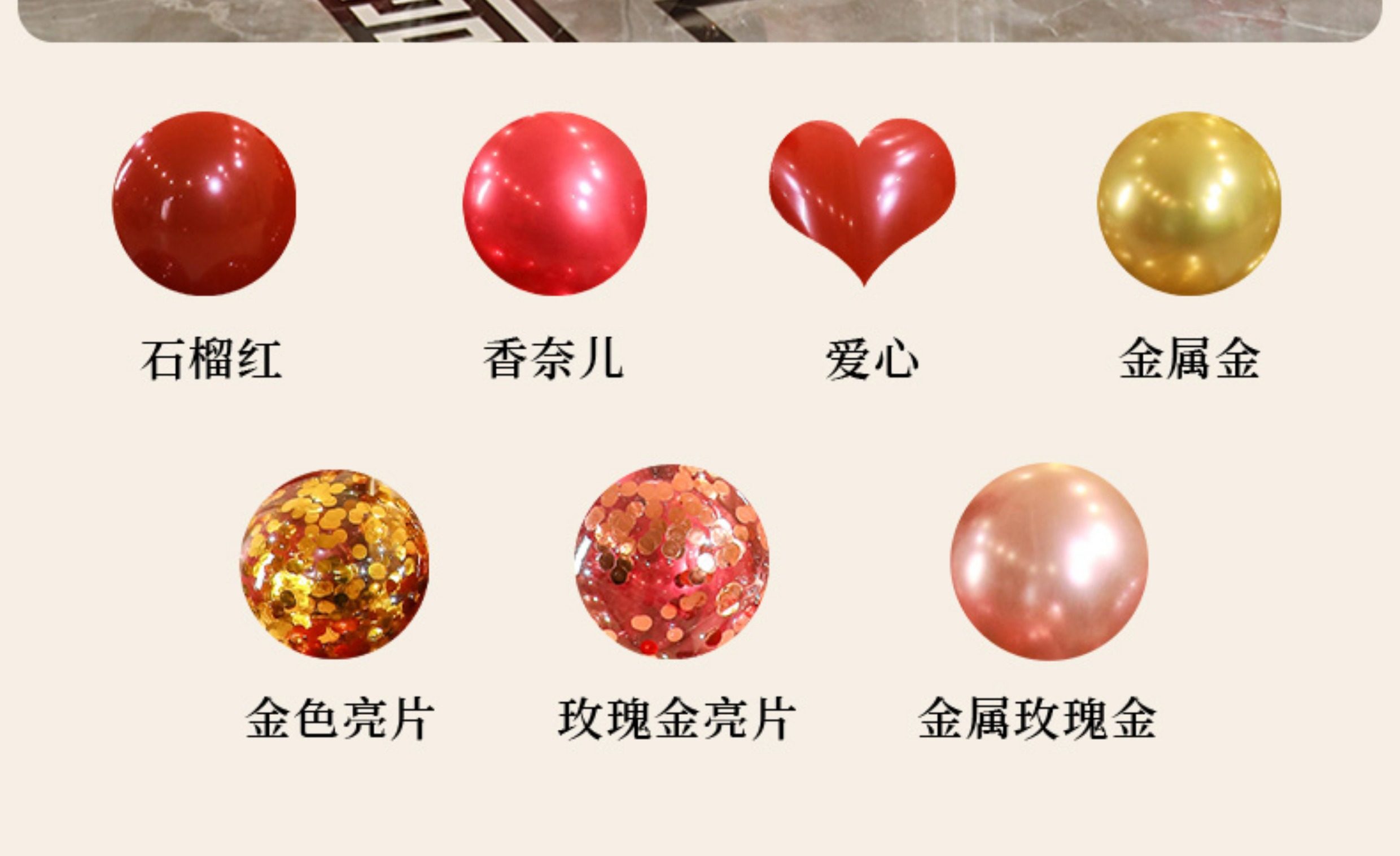 • 바닥에 떠다니는 활 2세트 [석류 레드 하트 10개 + 메탈릭 로즈 골드 10개 + 로즈 골드 스팽글 10개]
