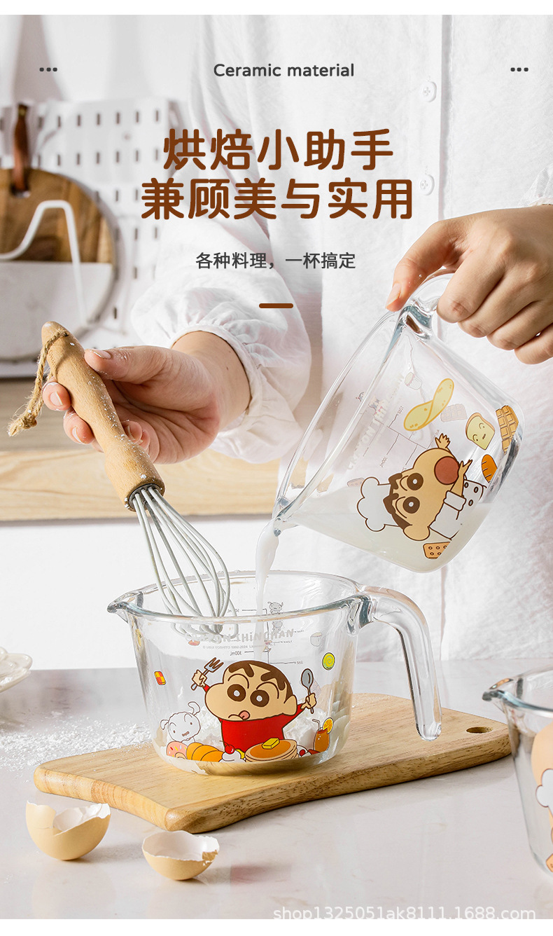 크레용 신 유리 측정 컵 컬러 박스 스케일 가정용 주방 베이킹 계란 측정 컵 필터 귀여운스토어 가기