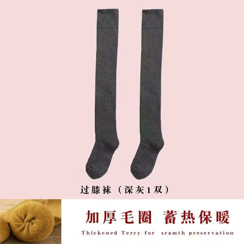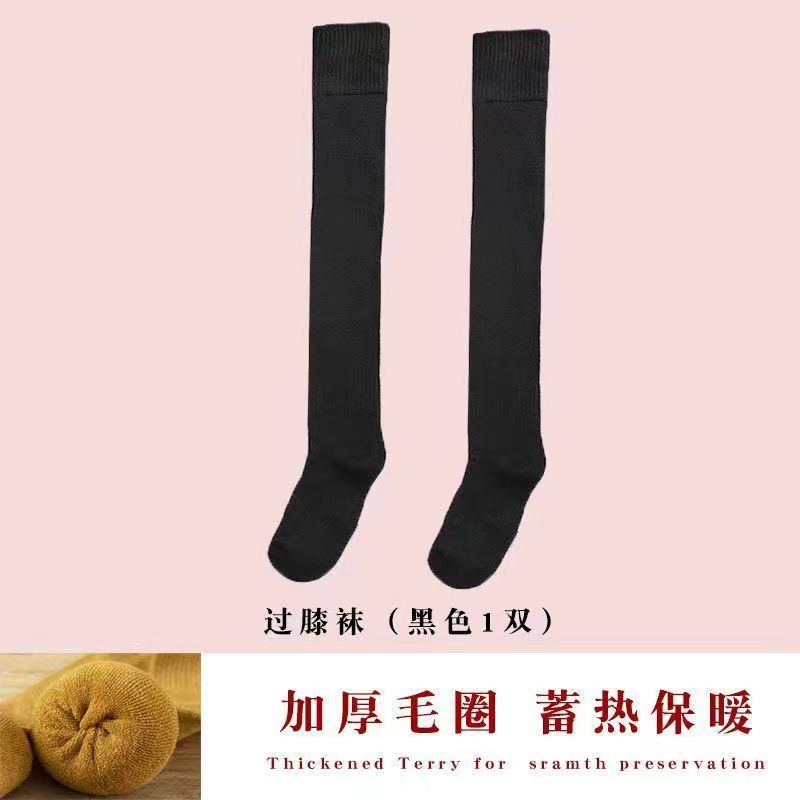 여성을위한 무릎 위 스타킹 기모 두꺼운 따뜻한 무릎 위 양말 테리 허벅지 양말 여성용 얇은 겨울 두꺼운 양말스토어 가기