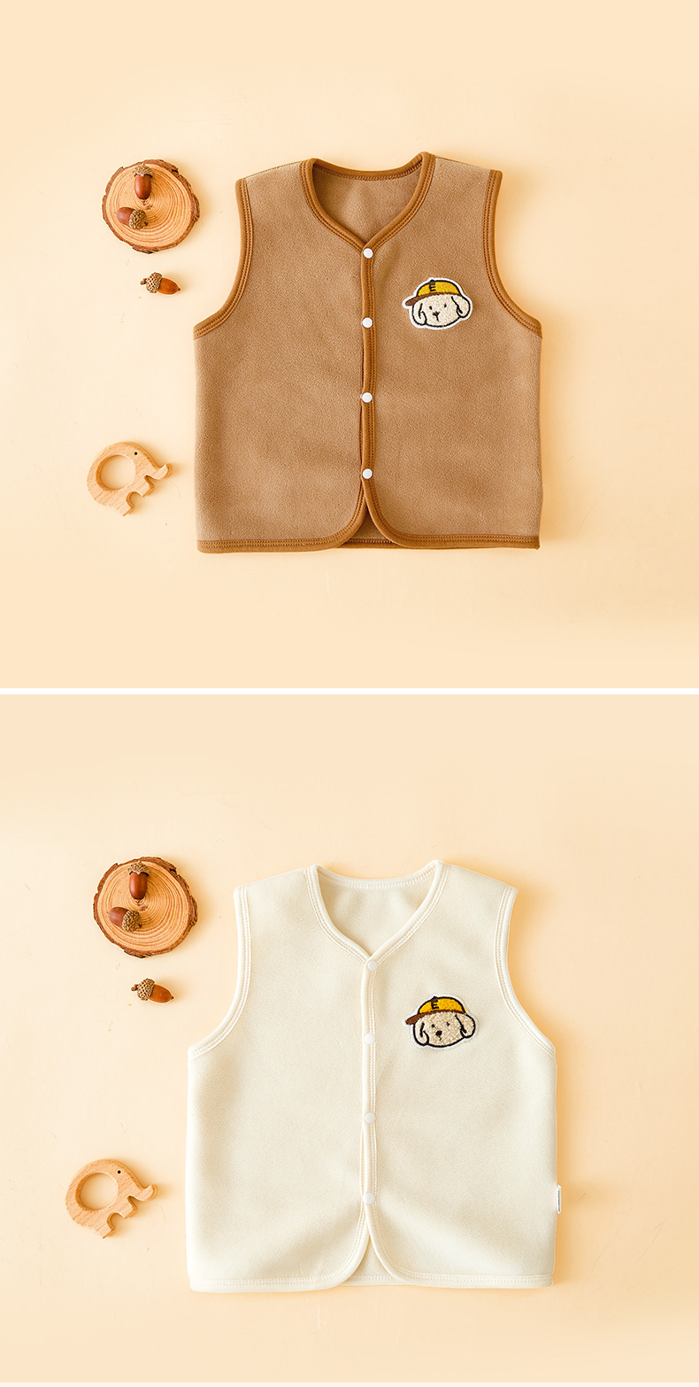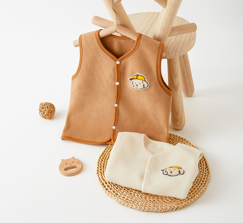 새로운 가을과 겨울 어린이 조끼 새로운 서양식 올림픽 벨벳 조끼 아기 뼈없는 만화 외부 착용 자수 어린이 조끼