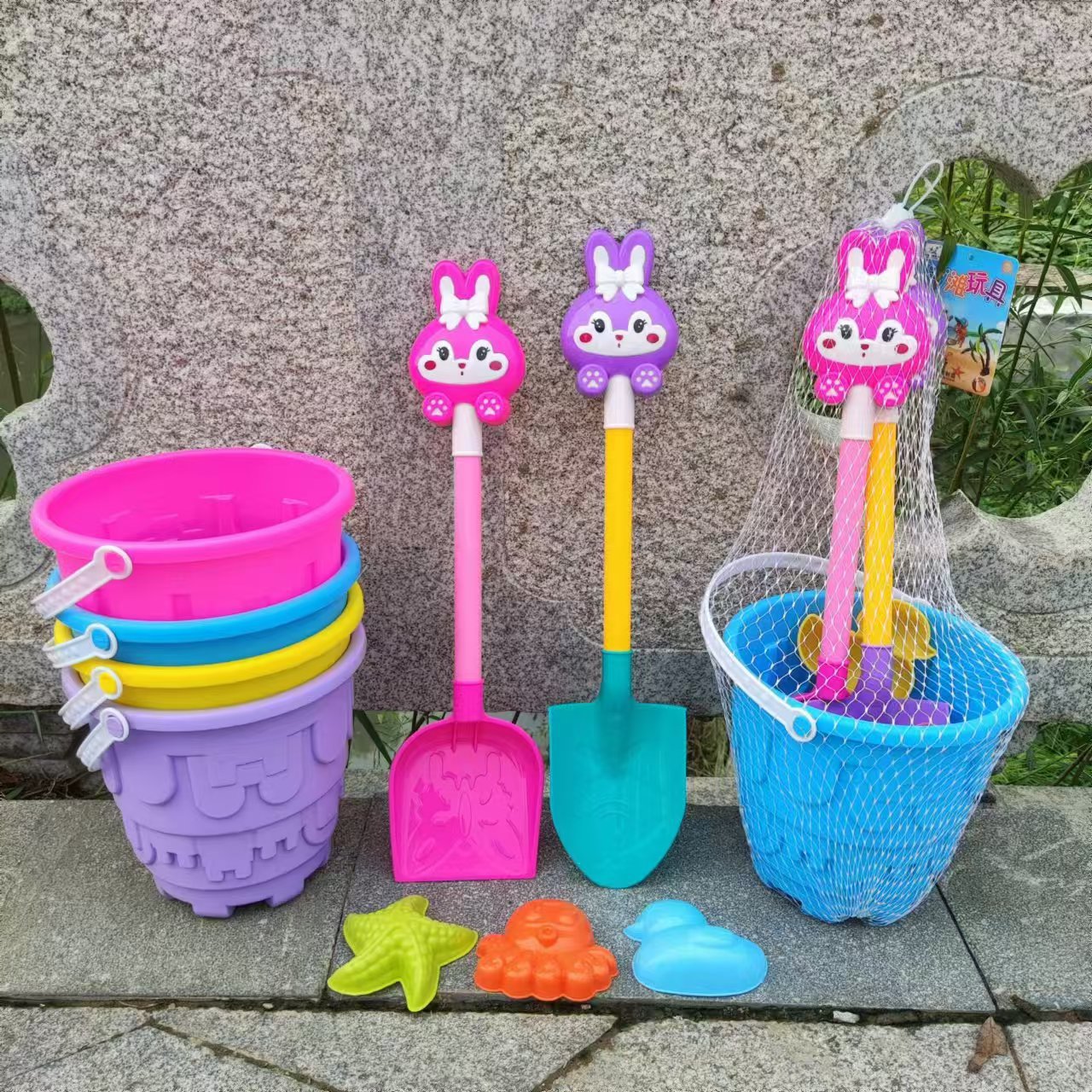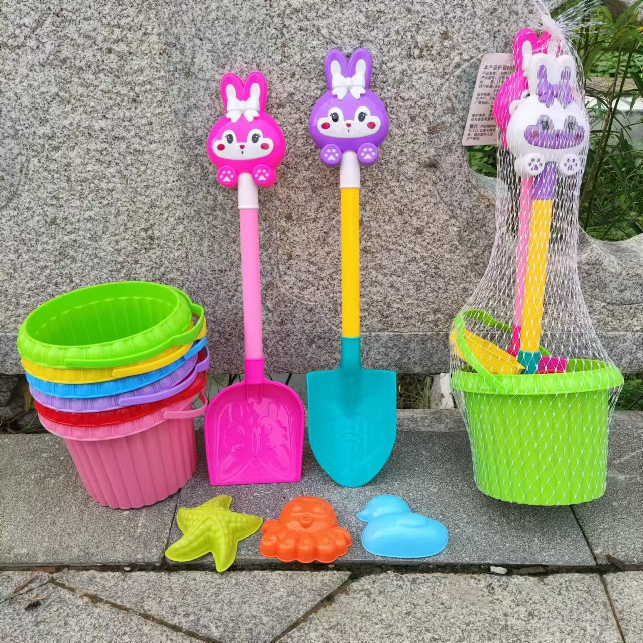 해변 장난감 삽 양동이 세트 놀이 모래 파는 도구 해변 양동이 도매 만화 토끼 삽스토어 가기