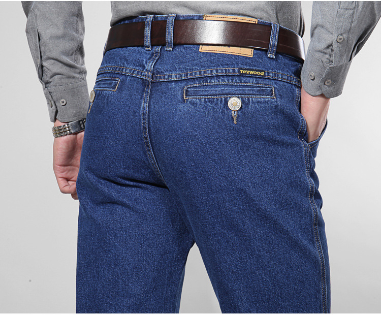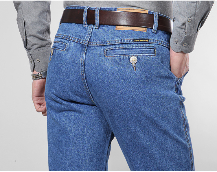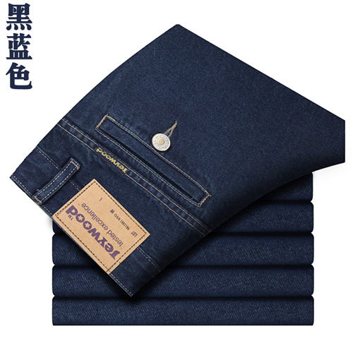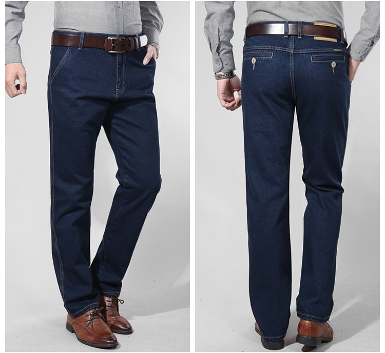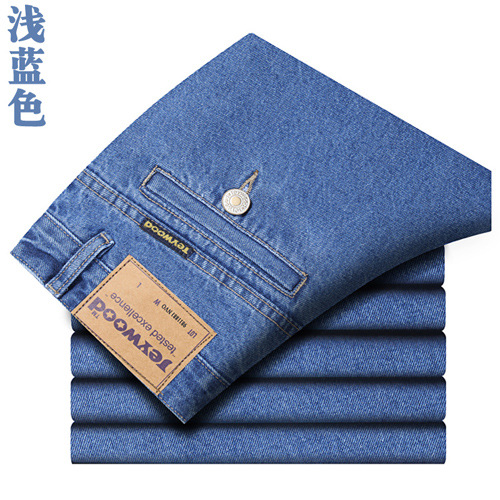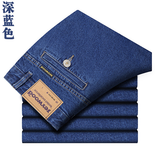 애플 청바지 남자 정품 봄과 여름 중년 하이 허리 딥 크로 치 루즈 스트레이트 중년 슬랜트 포켓 아버지 얇은
