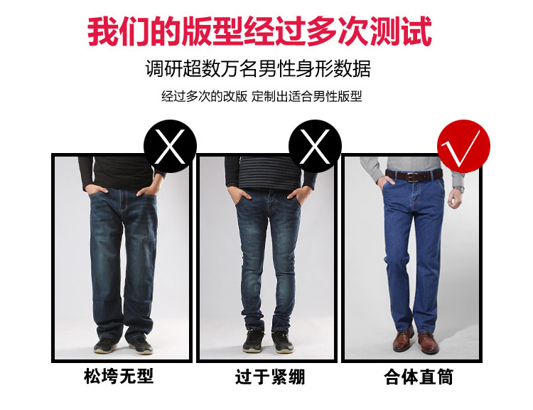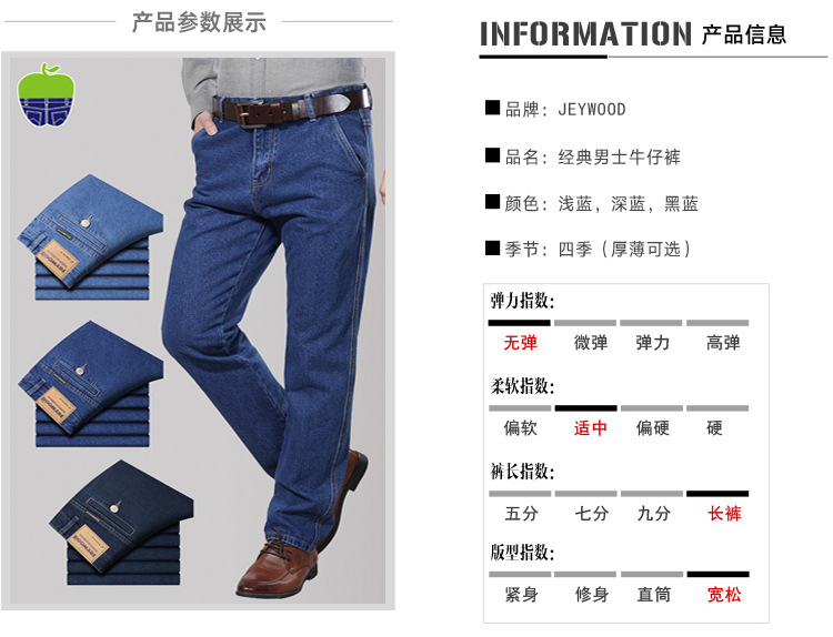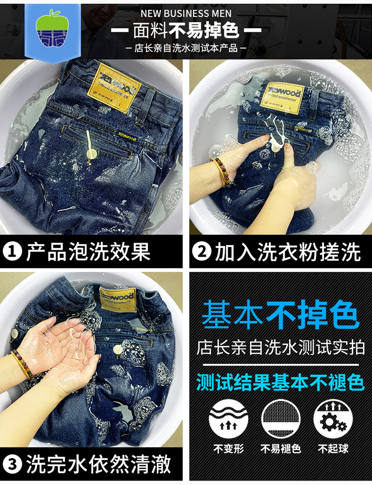 애플 청바지 남자 정품 봄과 여름 중년 하이 허리 딥 크로 치 루즈 스트레이트 중년 슬랜트 포켓 아버지 얇은스토어 가기