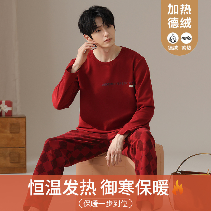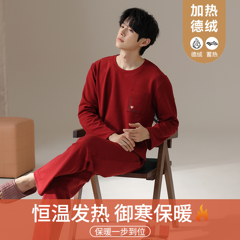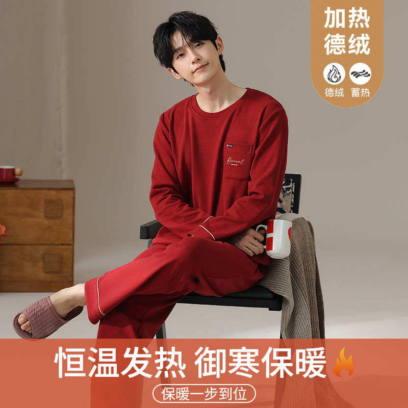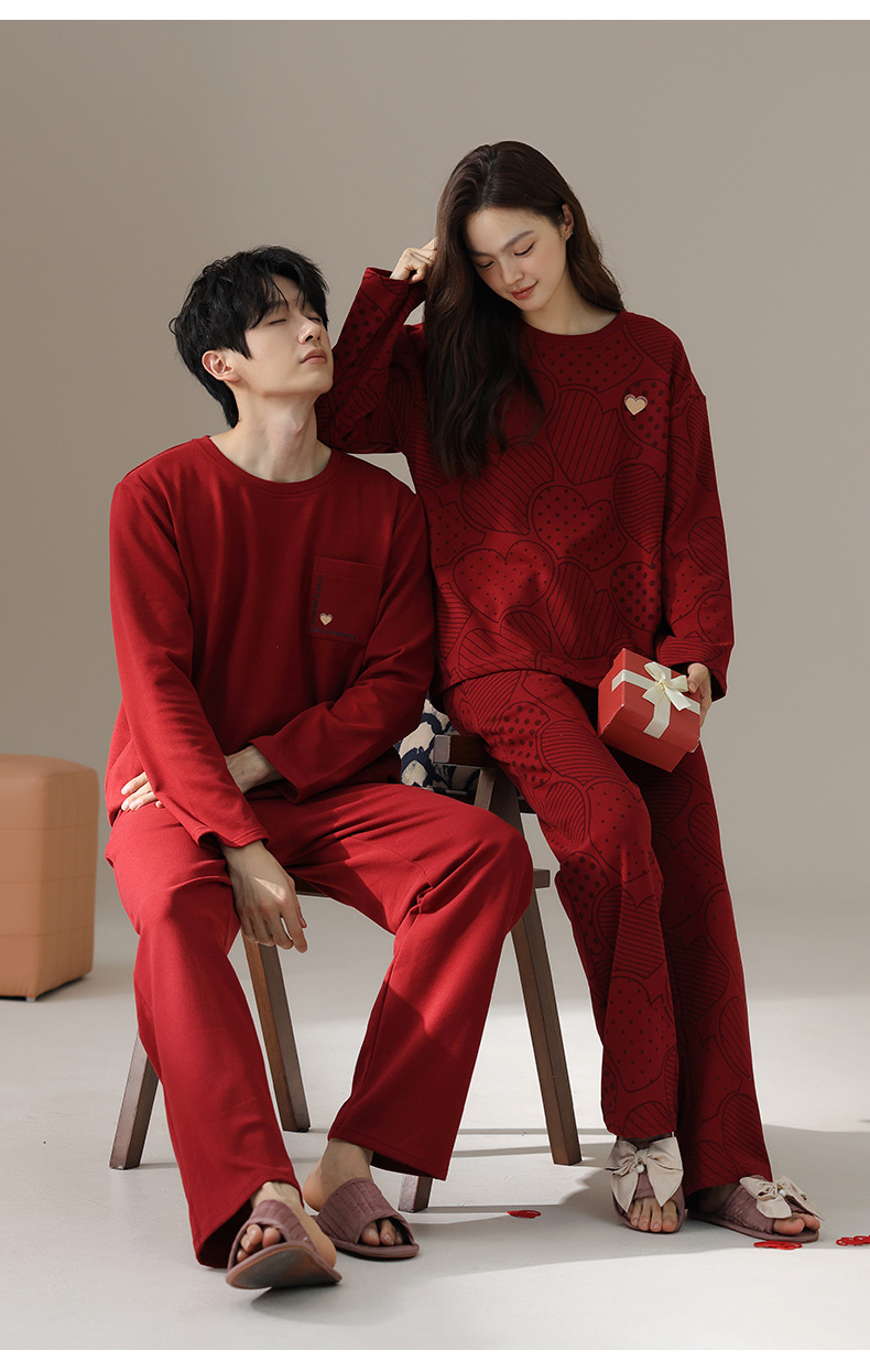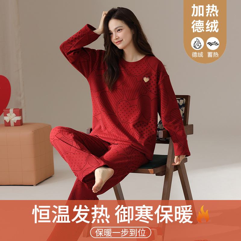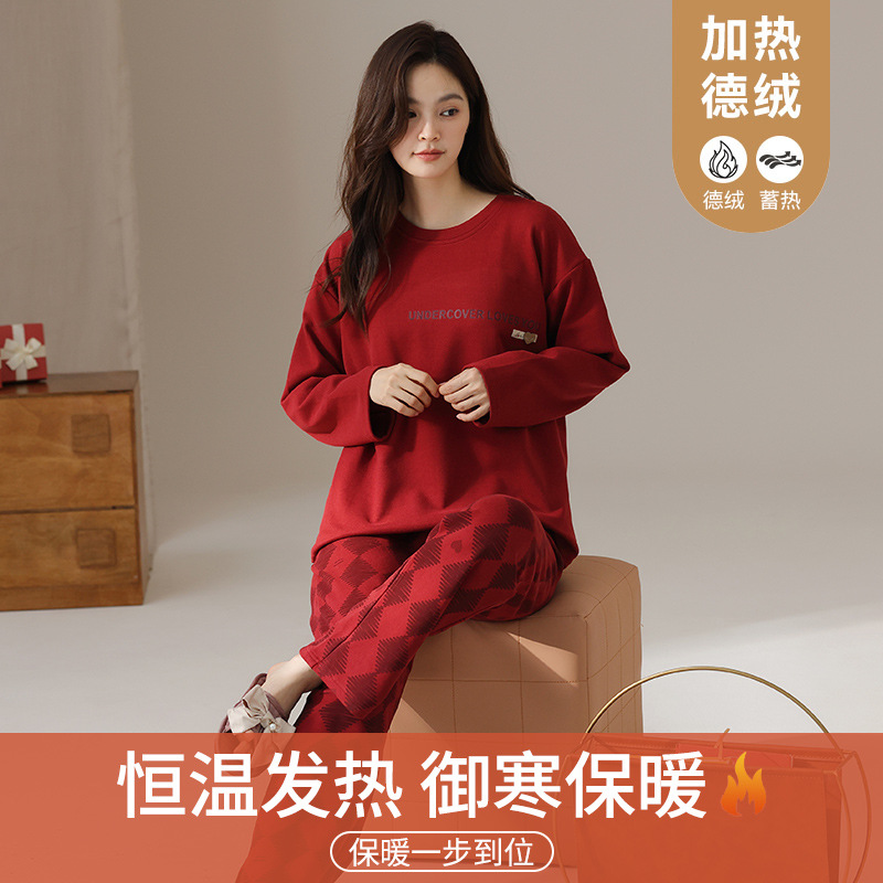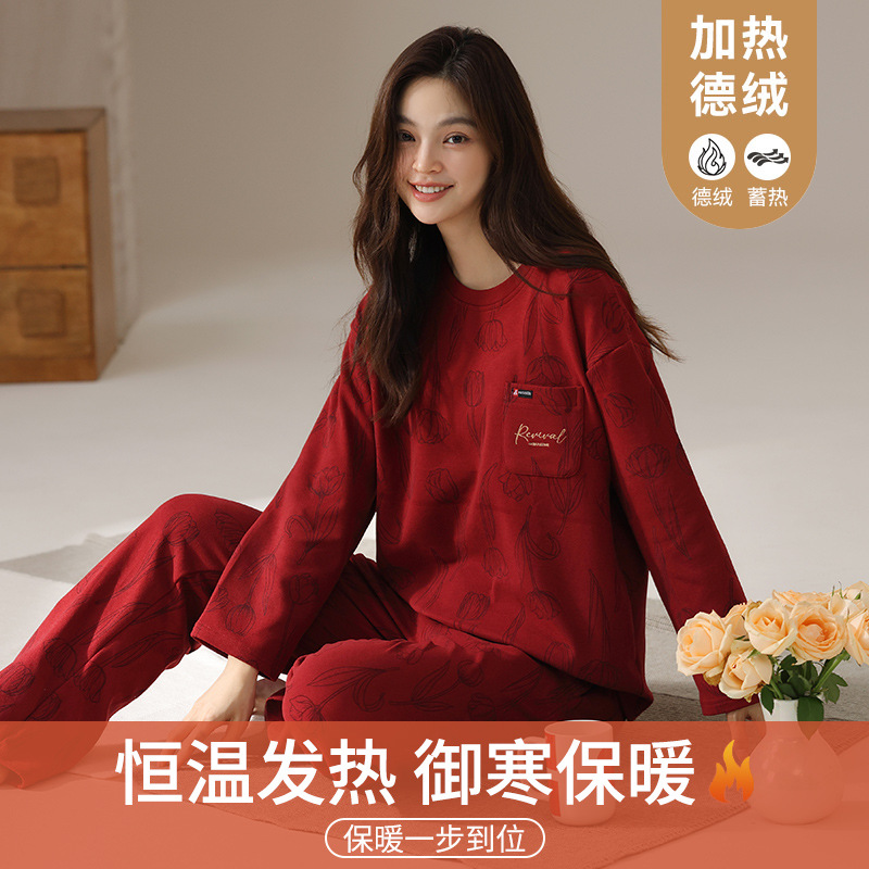 독일 벨벳 커플 잠옷 붉은 축제 긴 소매 가을과 겨울 생활 년 결혼은 가정 옷을 입을 수 세트스토어 가기