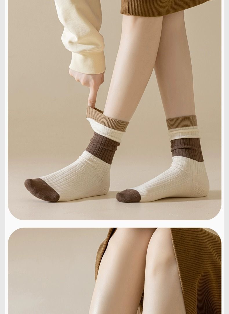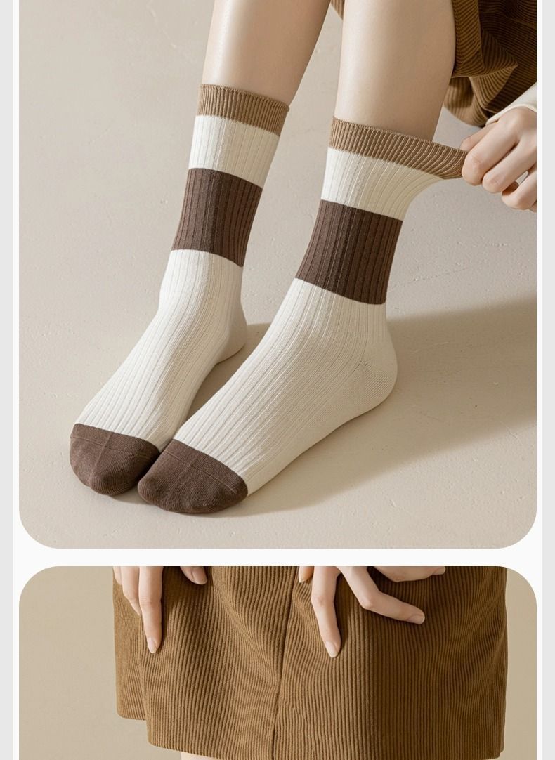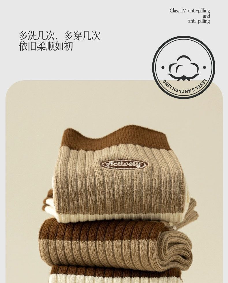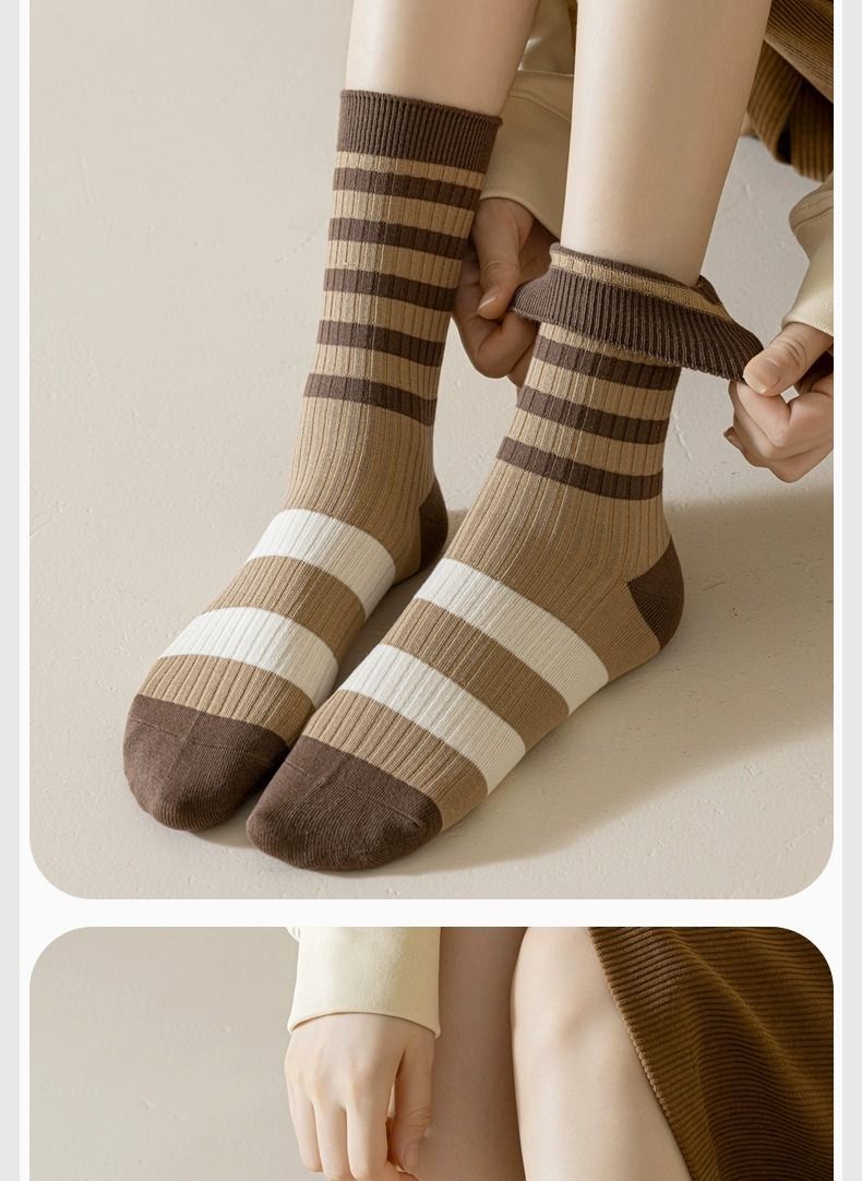 양말 여성의 가을과 겨울 중간 길이의 양말 Maillard 휴식 스타킹 빈티지 줄무늬 Zhuji 인터넷 Celebrous Style 여성용 스타킹
