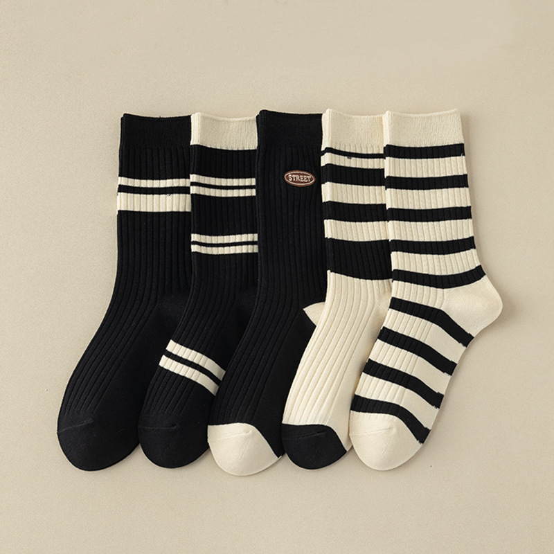 양말 여성의 가을과 겨울 중간 길이의 양말 Maillard 휴식 스타킹 빈티지 줄무늬 Zhuji 인터넷 Celebrous Style 여성용 스타킹스토어 가기