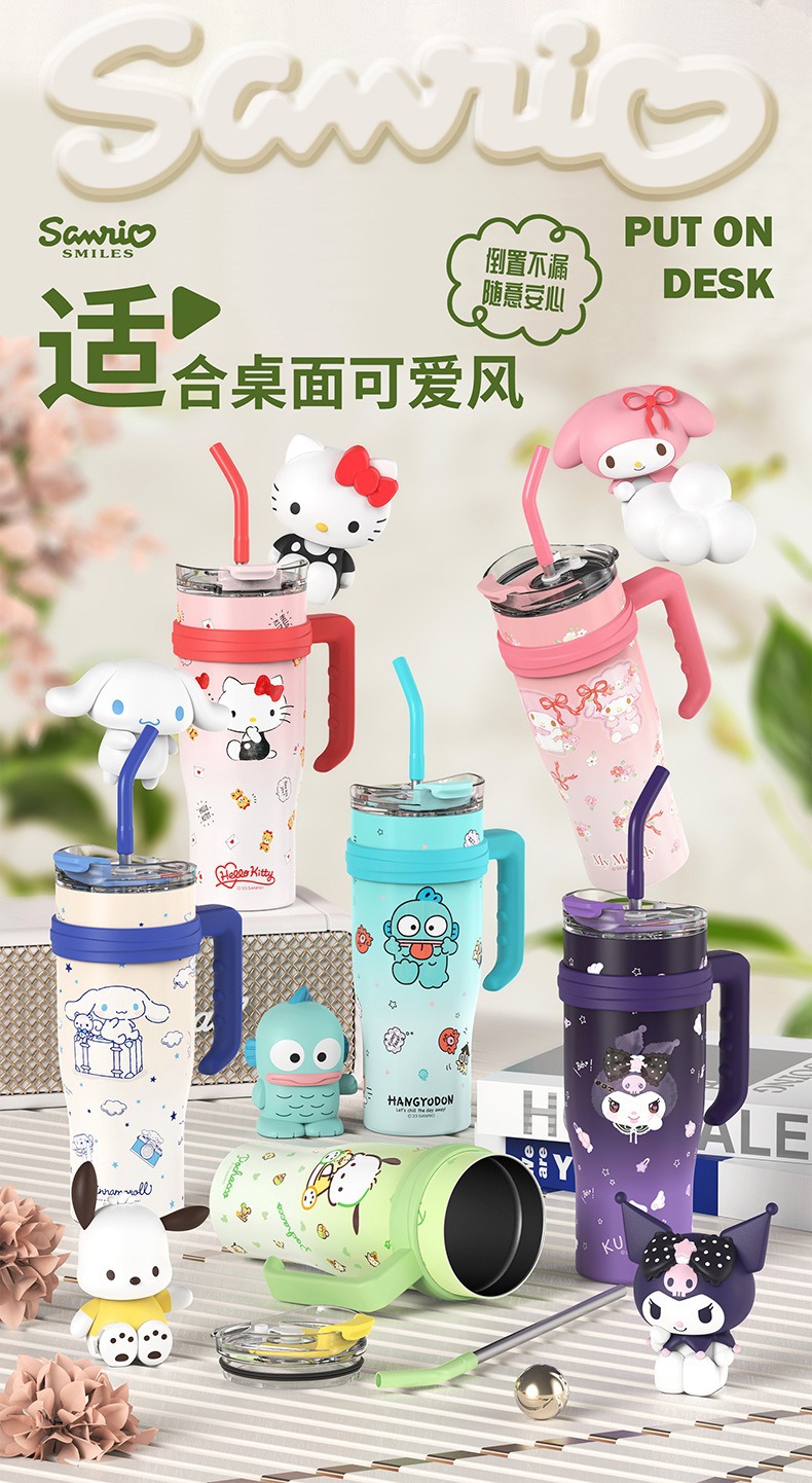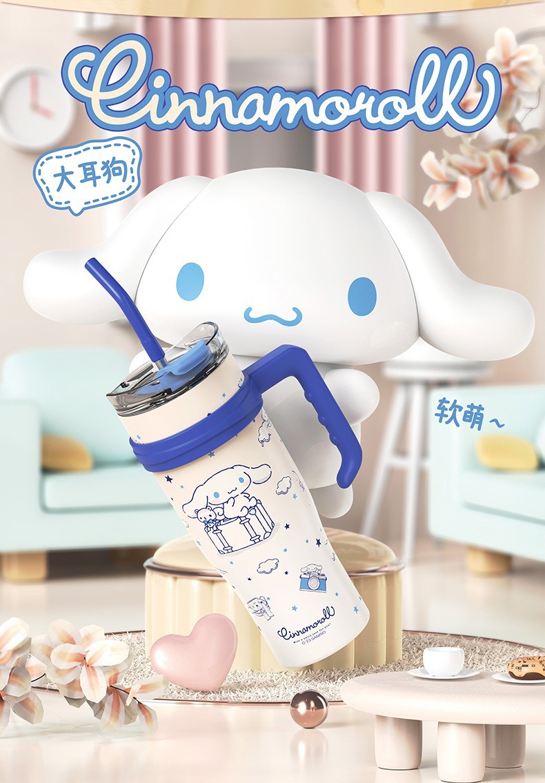 자이언트 아이스 컵 산리오 보온병 대용량 손잡이 포함 보온 보냉 차량용 컵 휴대용