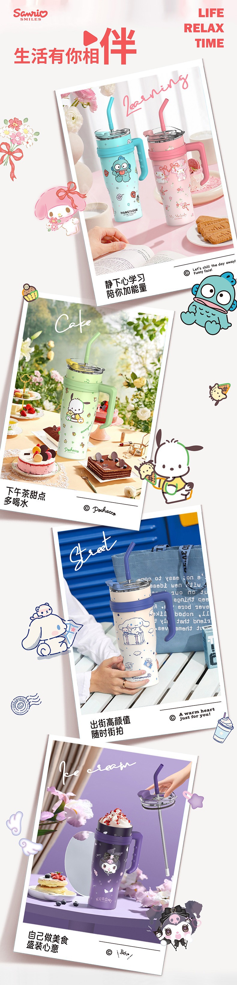 자이언트 아이스 컵 산리오 보온병 대용량 손잡이 포함 보온 보냉 차량용 컵 휴대용스토어 가기