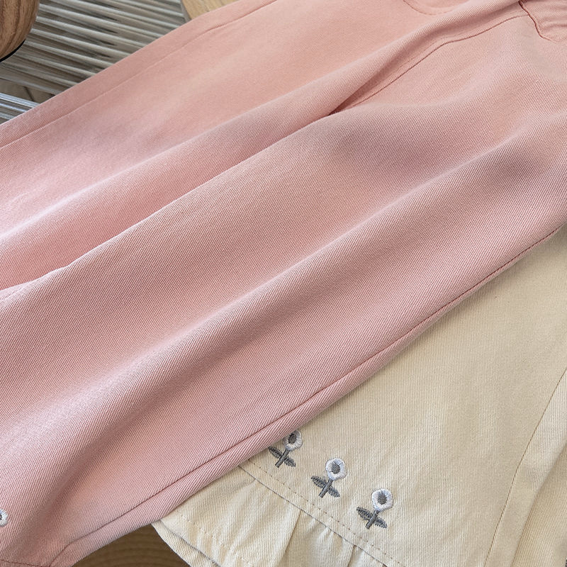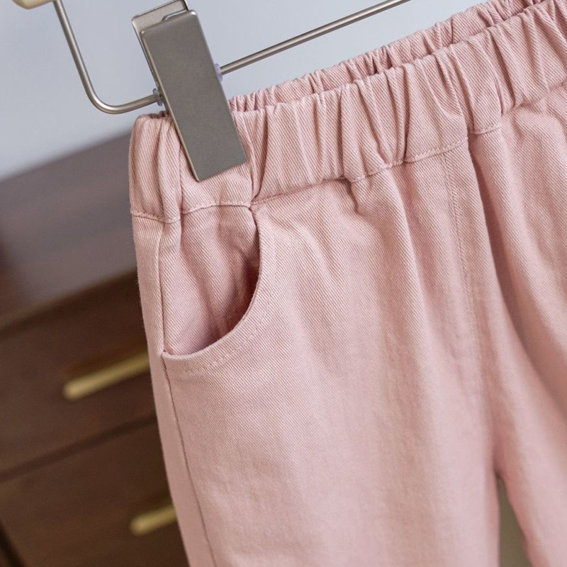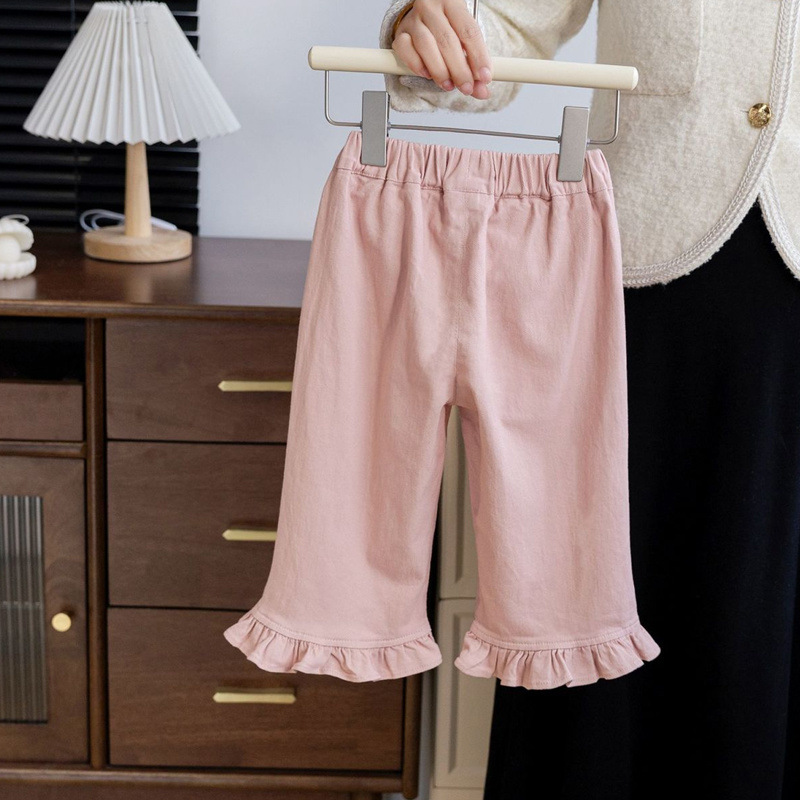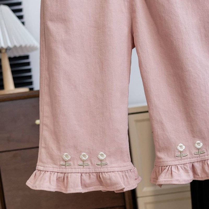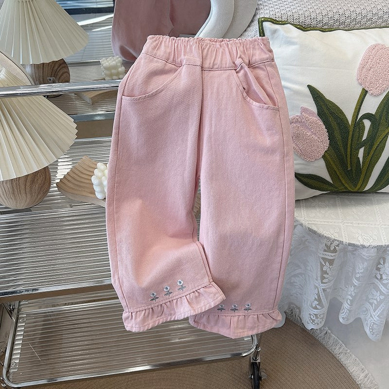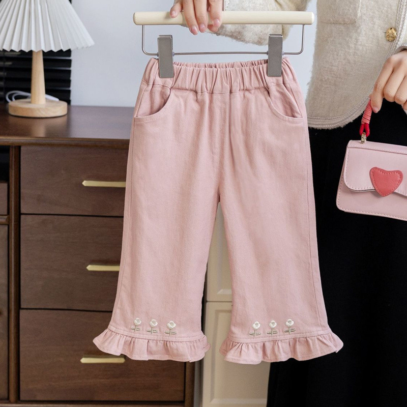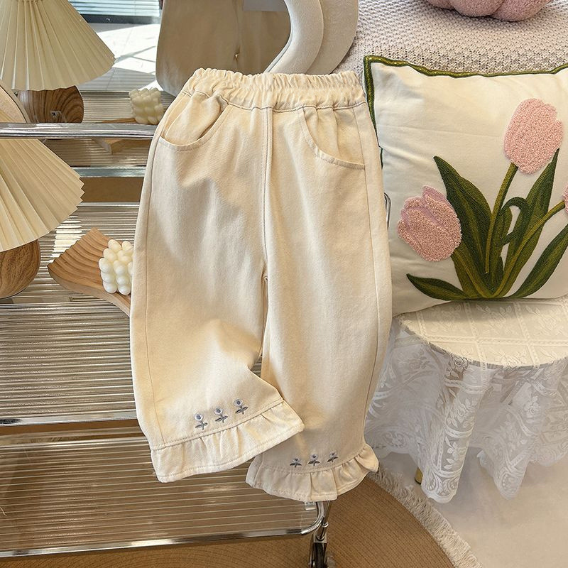 2024 봄과 가을 새로운 한국 스타일 귀 테두리 소녀 바지 얇은 올 매치 자수 솔리드 컬러 바지스토어 가기