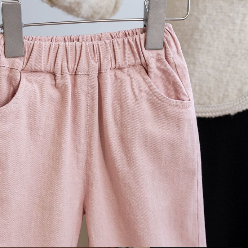 2024 봄과 가을 새로운 한국 스타일 귀 테두리 소녀 바지 얇은 올 매치 자수 솔리드 컬러 바지