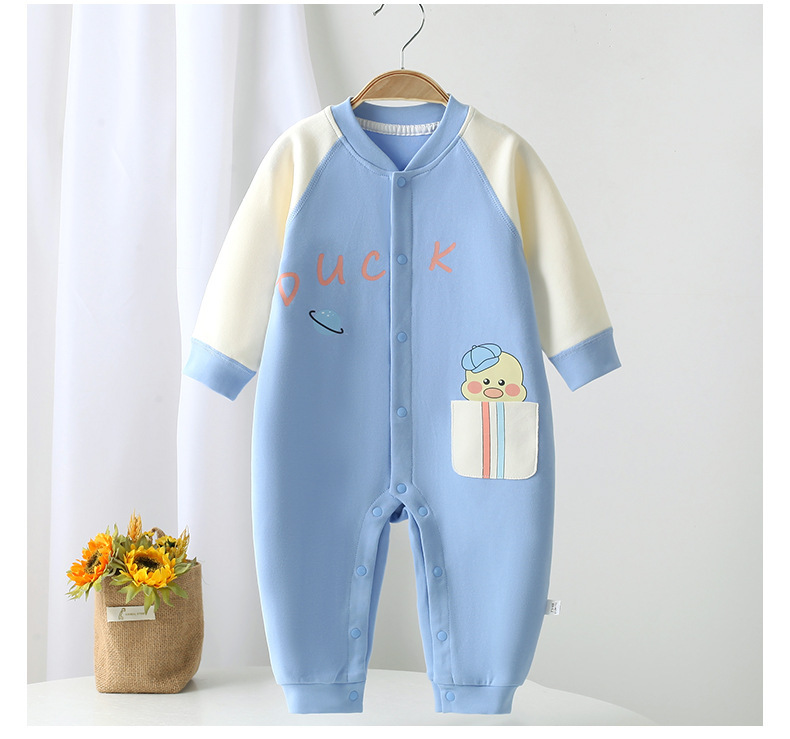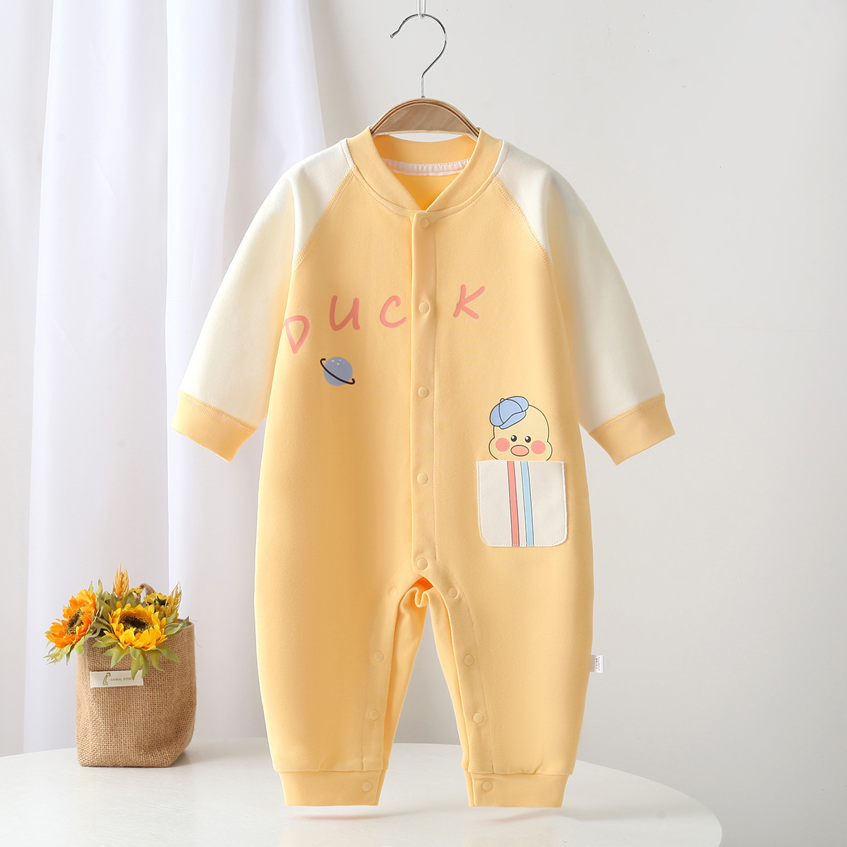 가을의 새로운 아기 만화 패턴 소년 소녀를위한 올인원 옷 봄과 가을에 닫힌 크로트가없는 옷을 입고스토어 가기