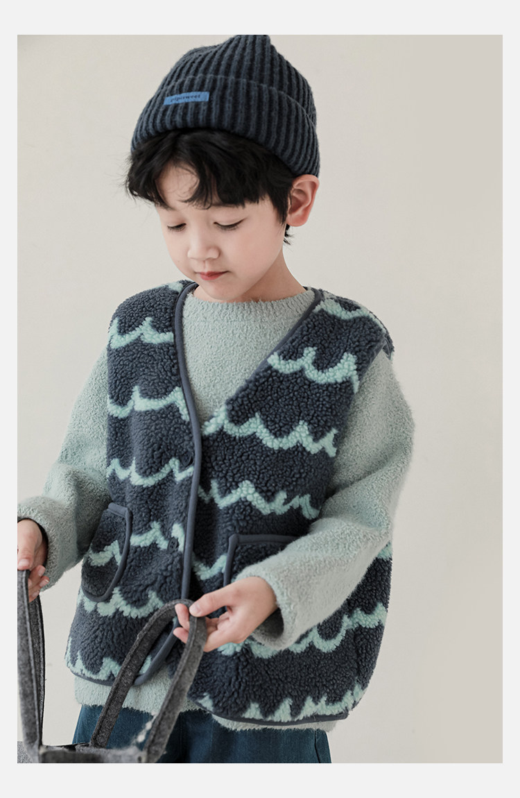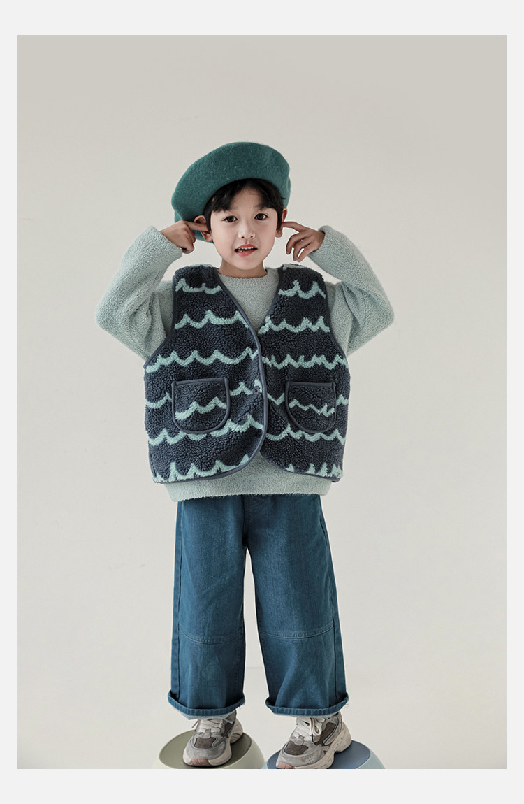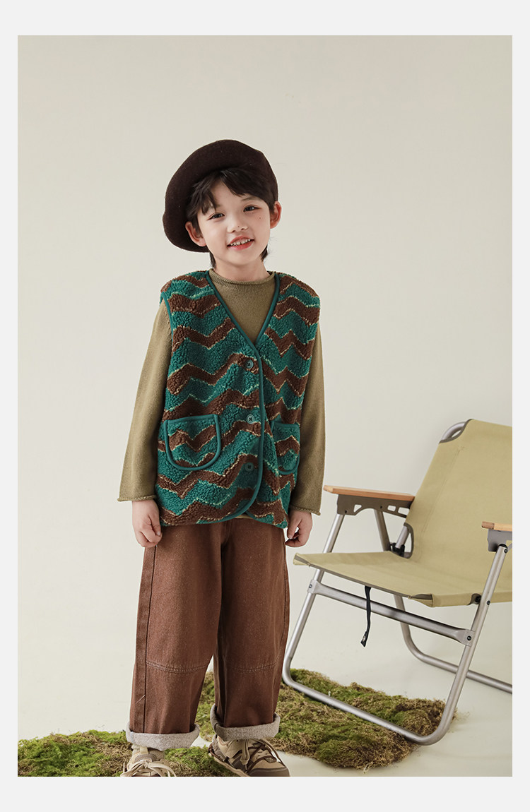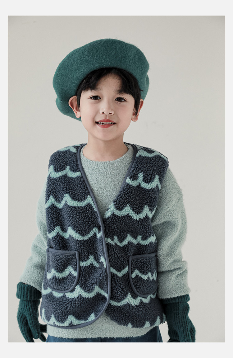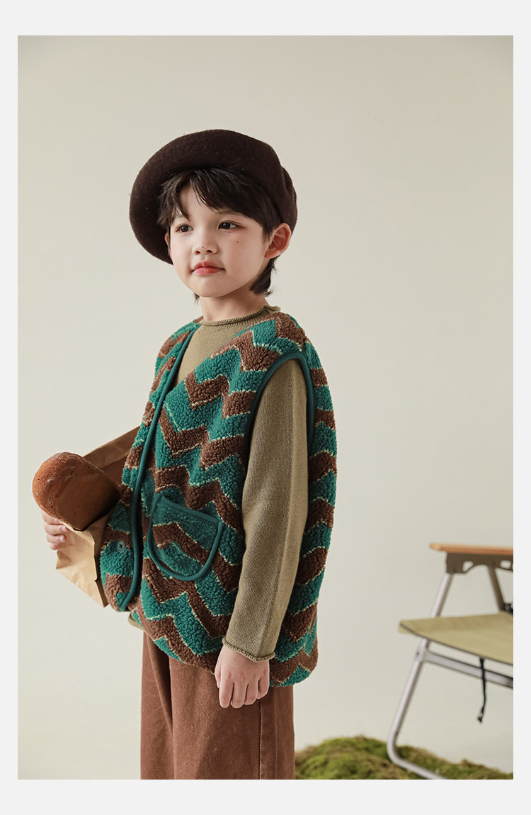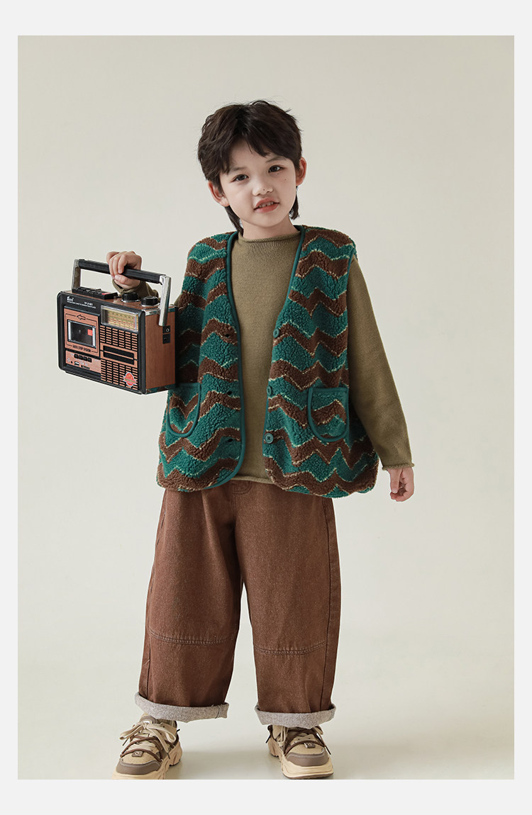 Wulibuyi 겨울 어린이 다채로운 골판지 직물 가장자리 더블 포켓 플러스 벨벳 조끼 소년 캐주얼 조끼 두꺼운스토어 가기