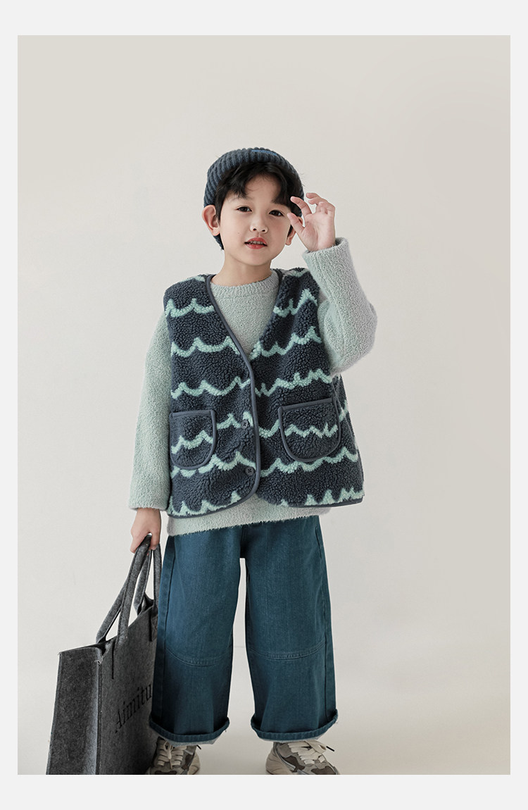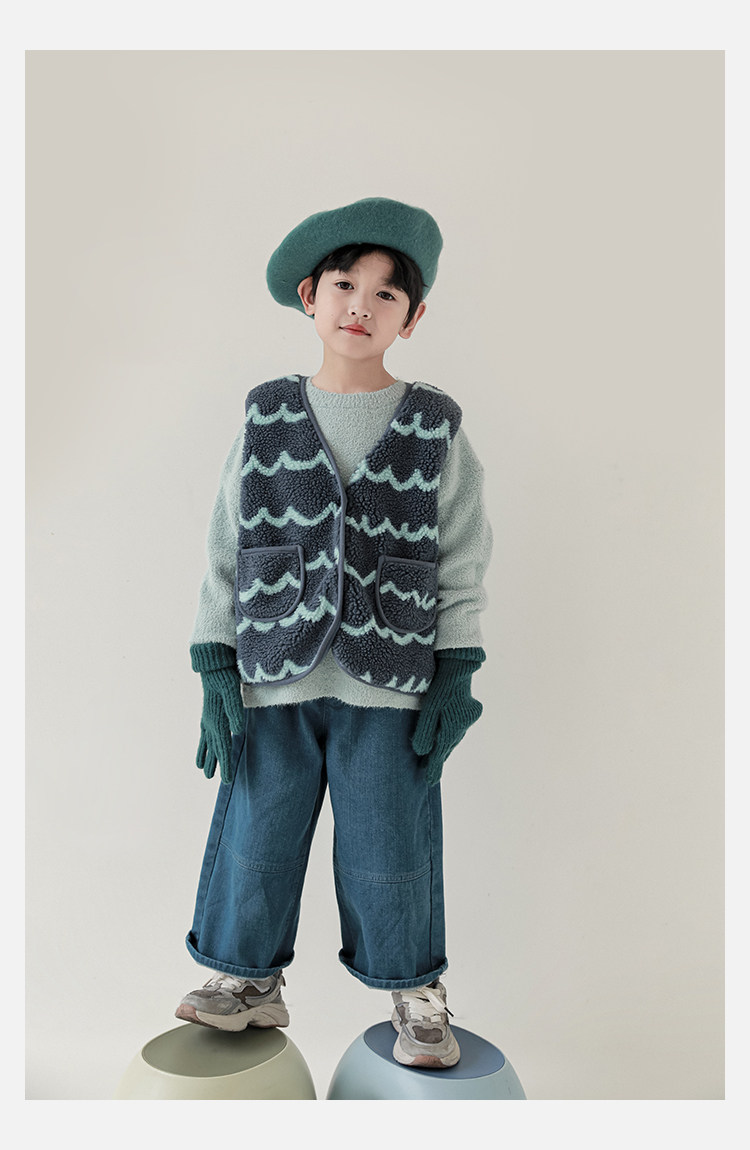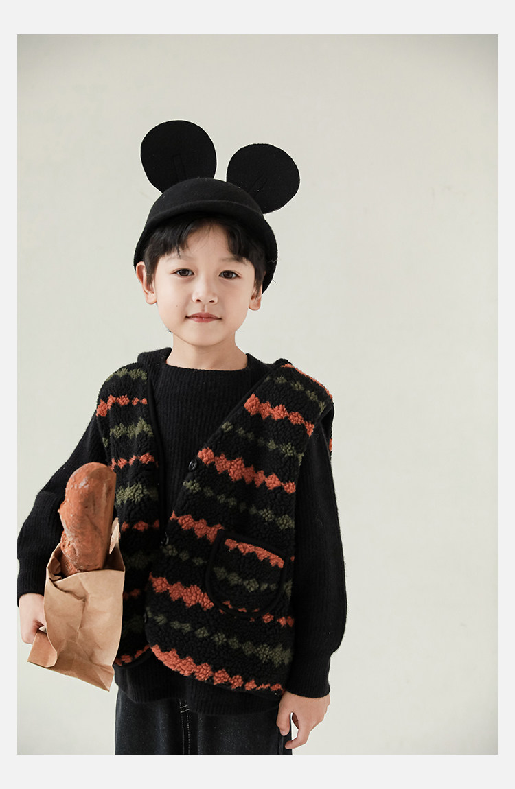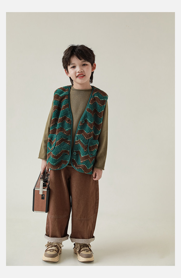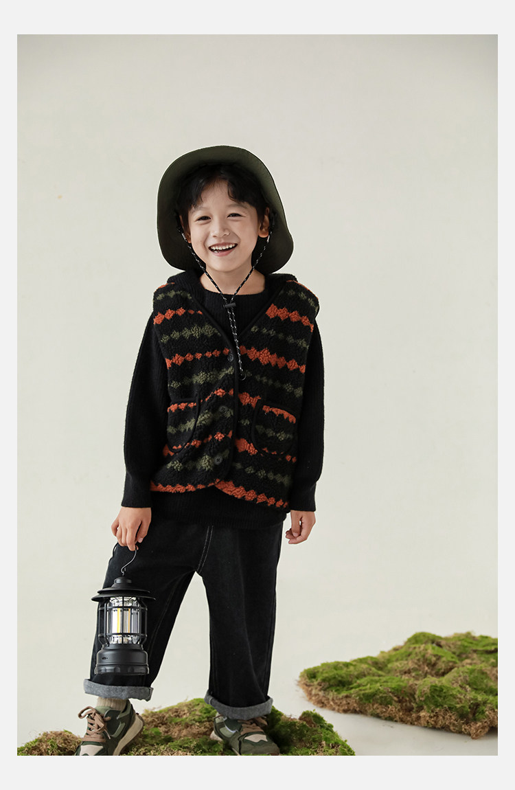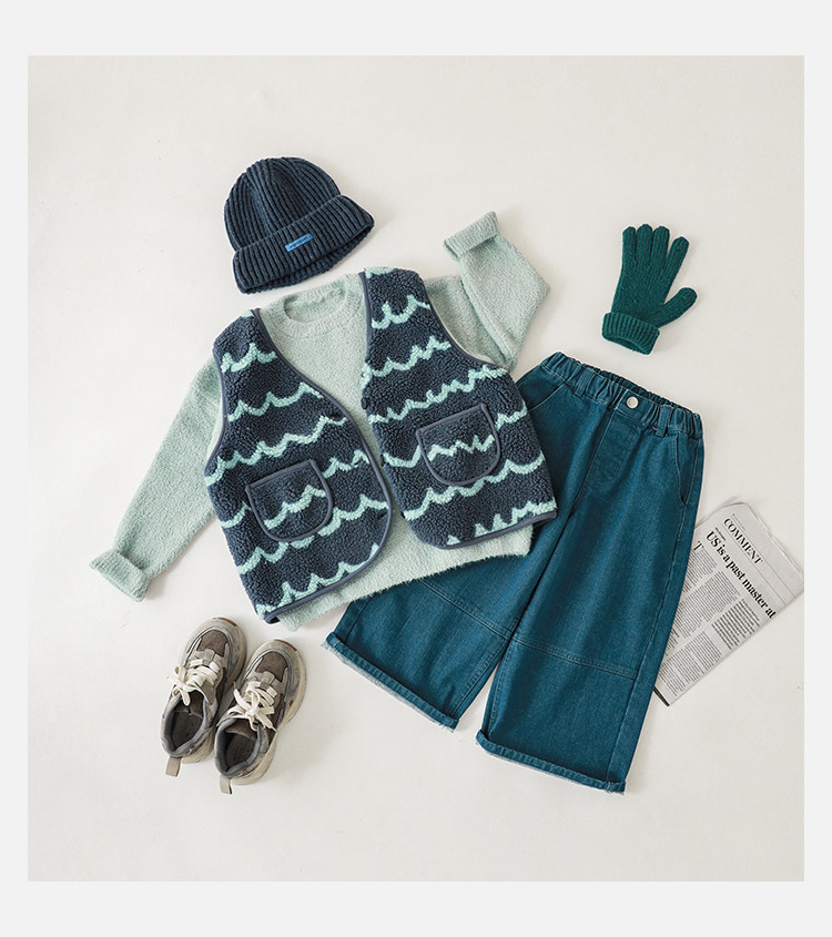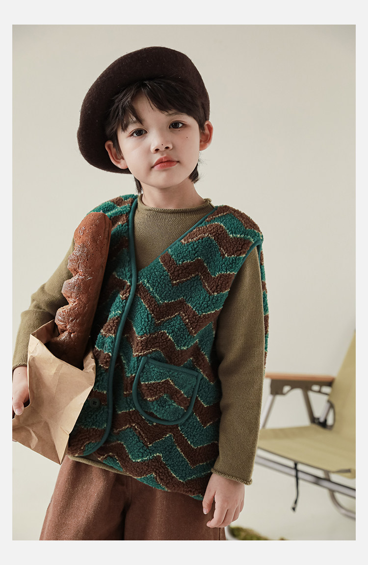 Wulibuyi 겨울 어린이 다채로운 골판지 직물 가장자리 더블 포켓 플러스 벨벳 조끼 소년 캐주얼 조끼 두꺼운스토어 가기