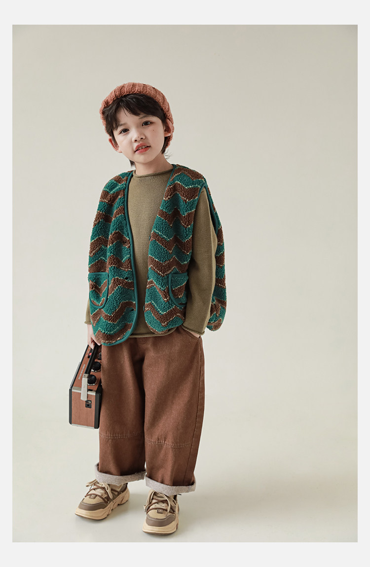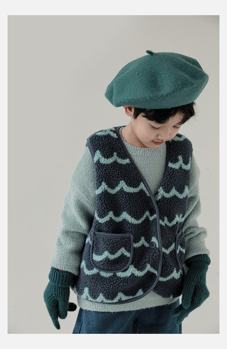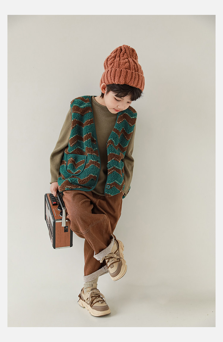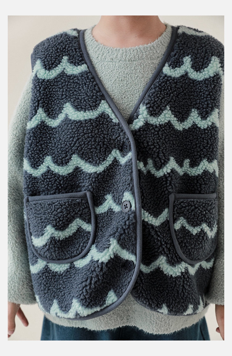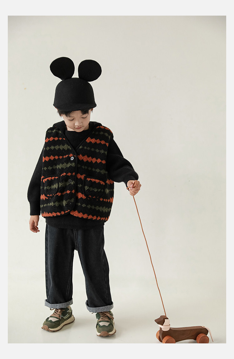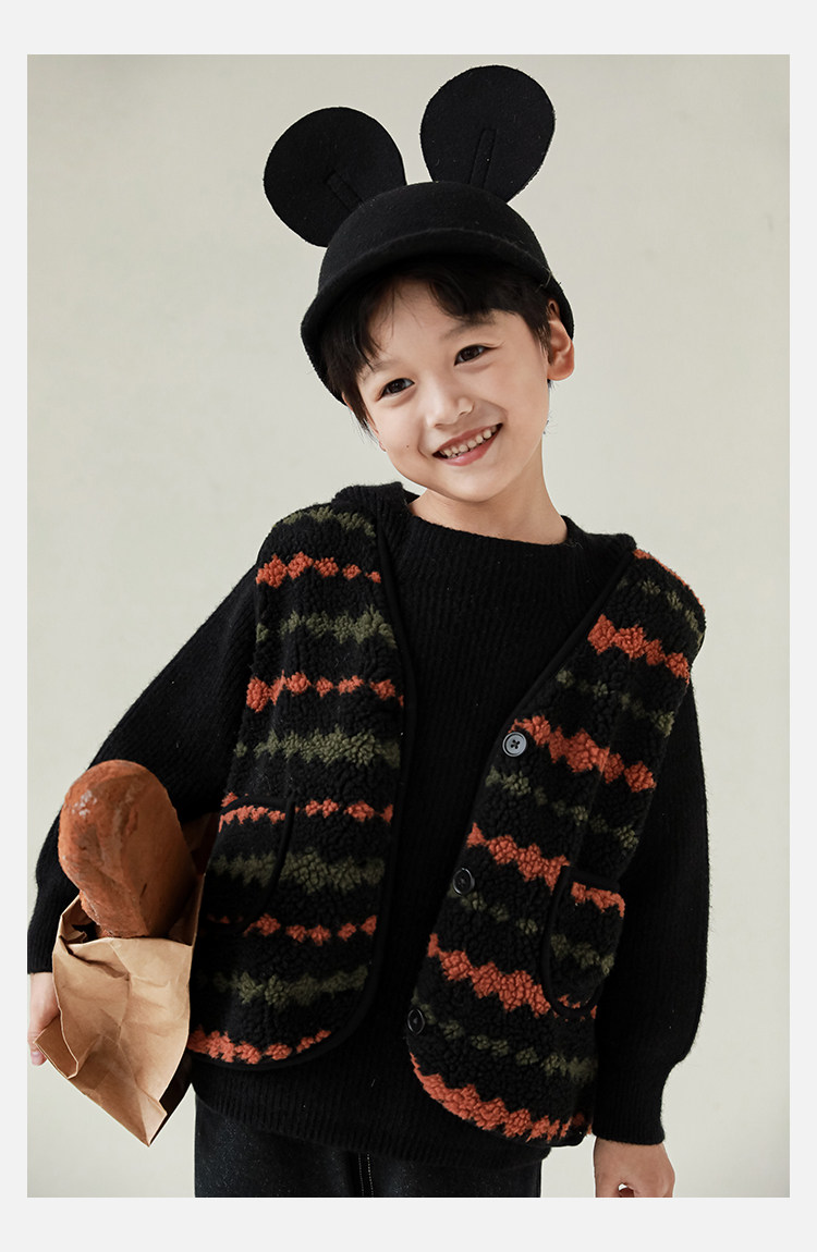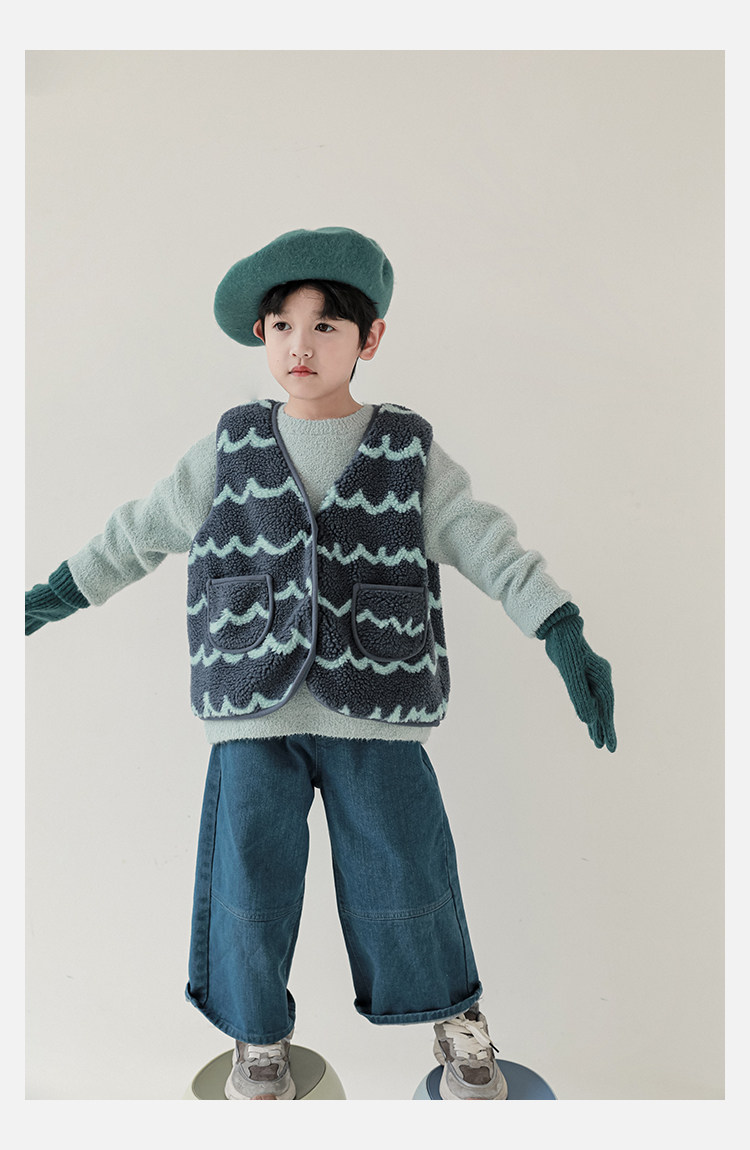 Wulibuyi 겨울 어린이 다채로운 골판지 직물 가장자리 더블 포켓 플러스 벨벳 조끼 소년 캐주얼 조끼 두꺼운스토어 가기