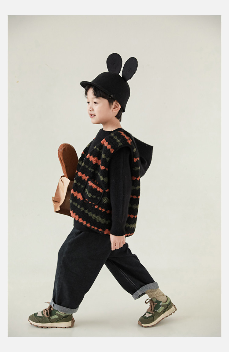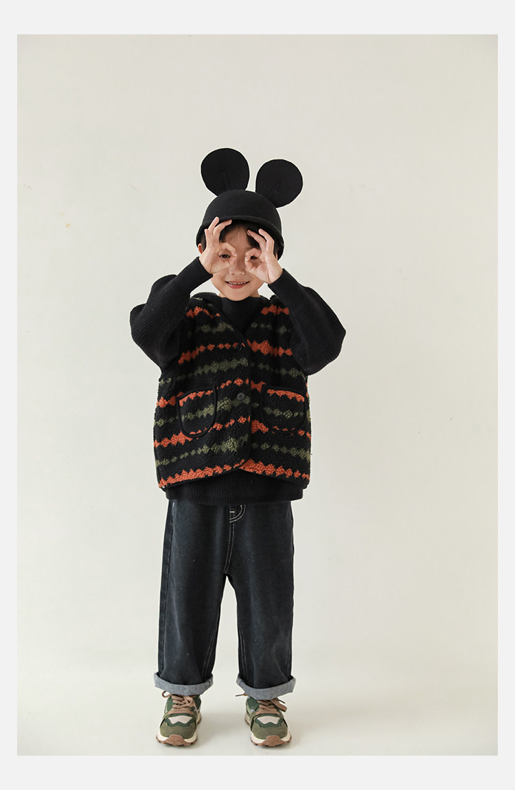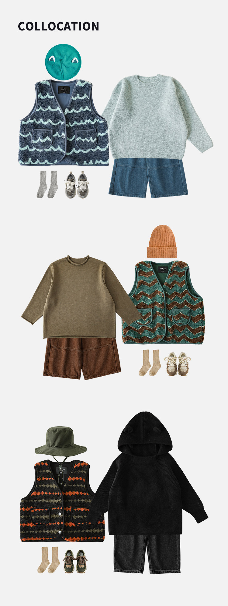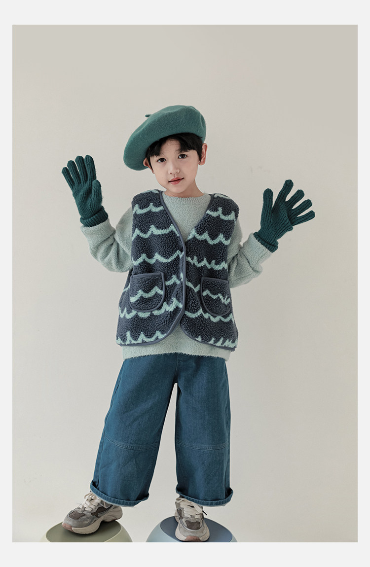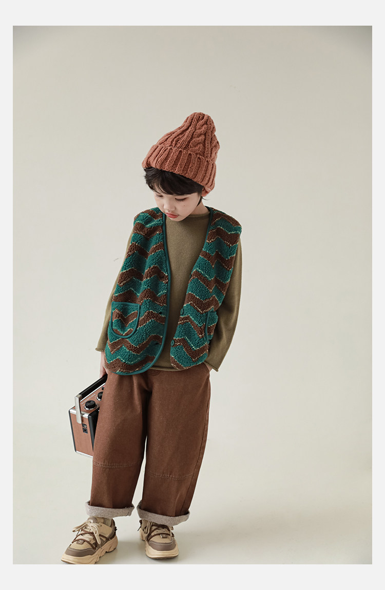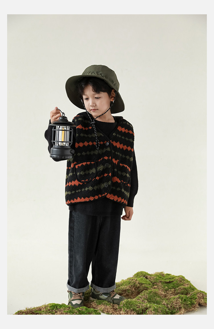 Wulibuyi 겨울 어린이 다채로운 골판지 직물 가장자리 더블 포켓 플러스 벨벳 조끼 소년 캐주얼 조끼 두꺼운스토어 가기