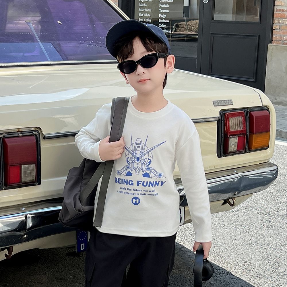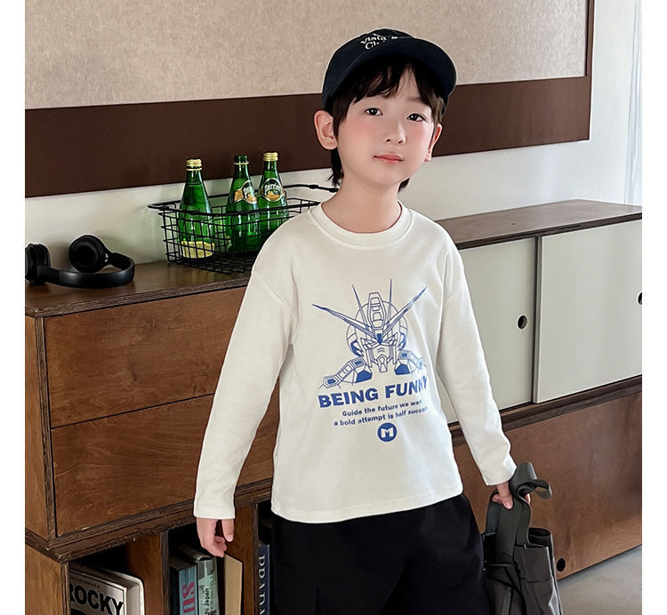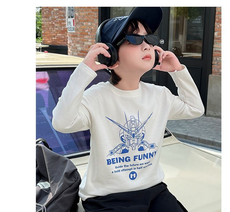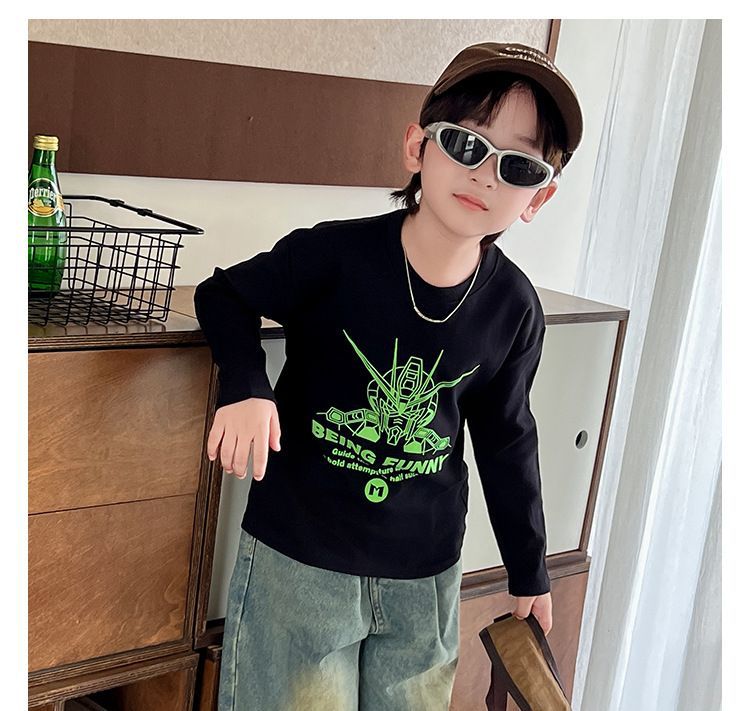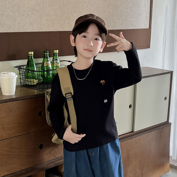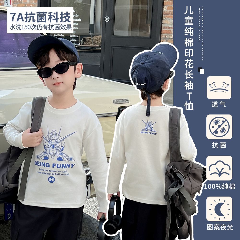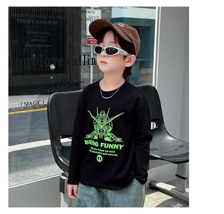 남학생 긴팔 티셔츠 2024 신상 아동복 가을착용 어린이 탑 중 · 대형 어린이 면 가을과 겨울베이스 셔츠 빛나다