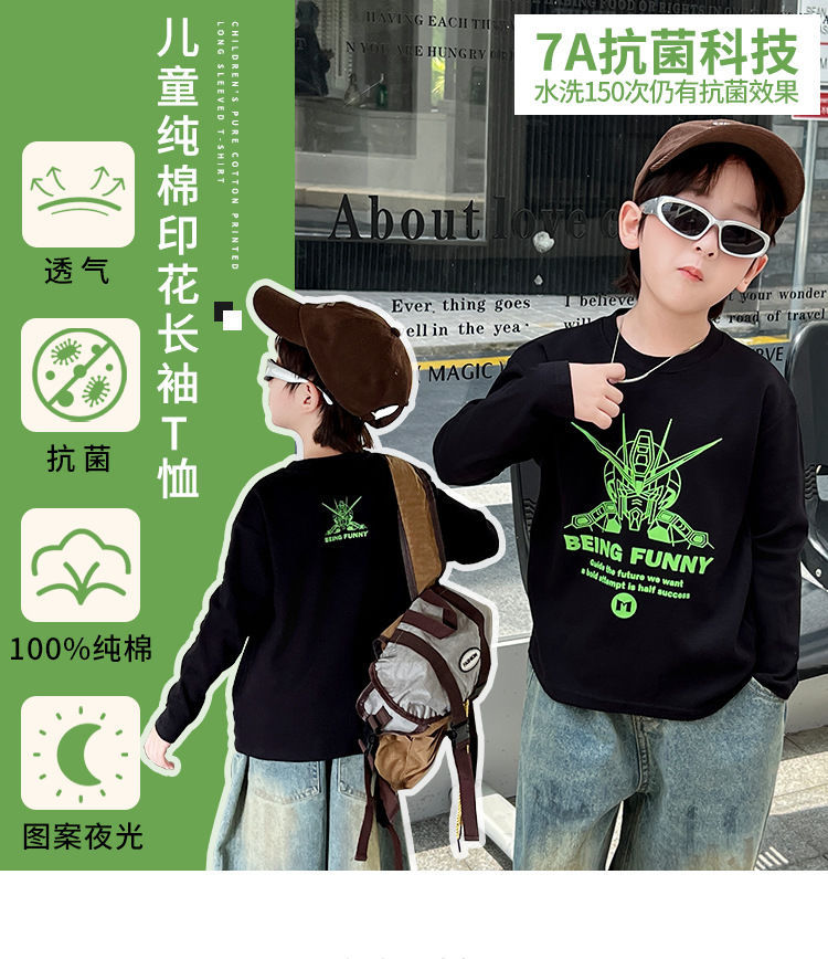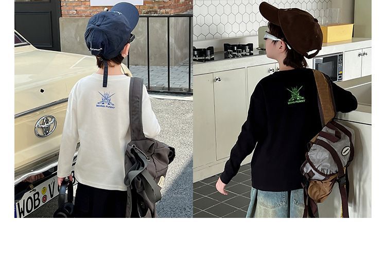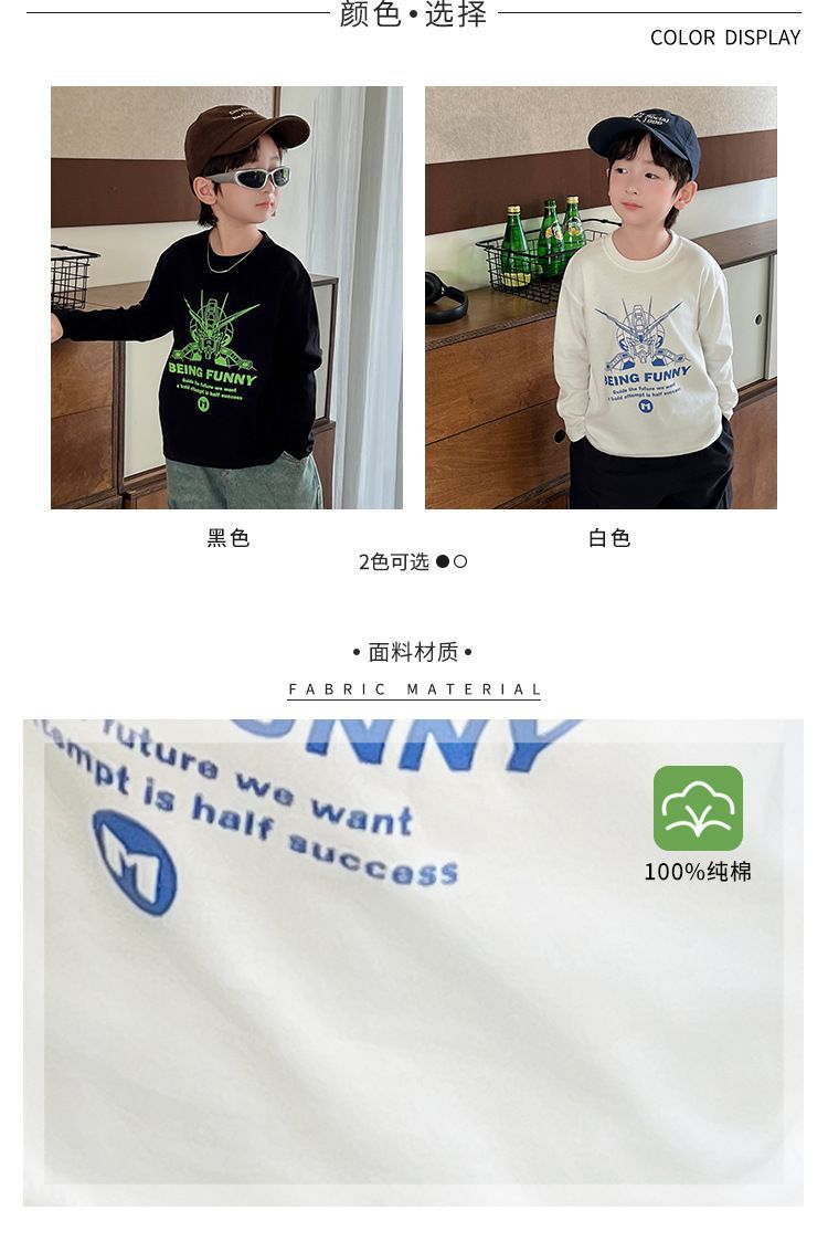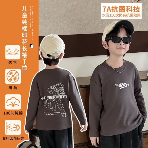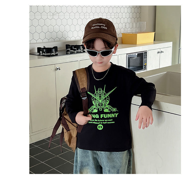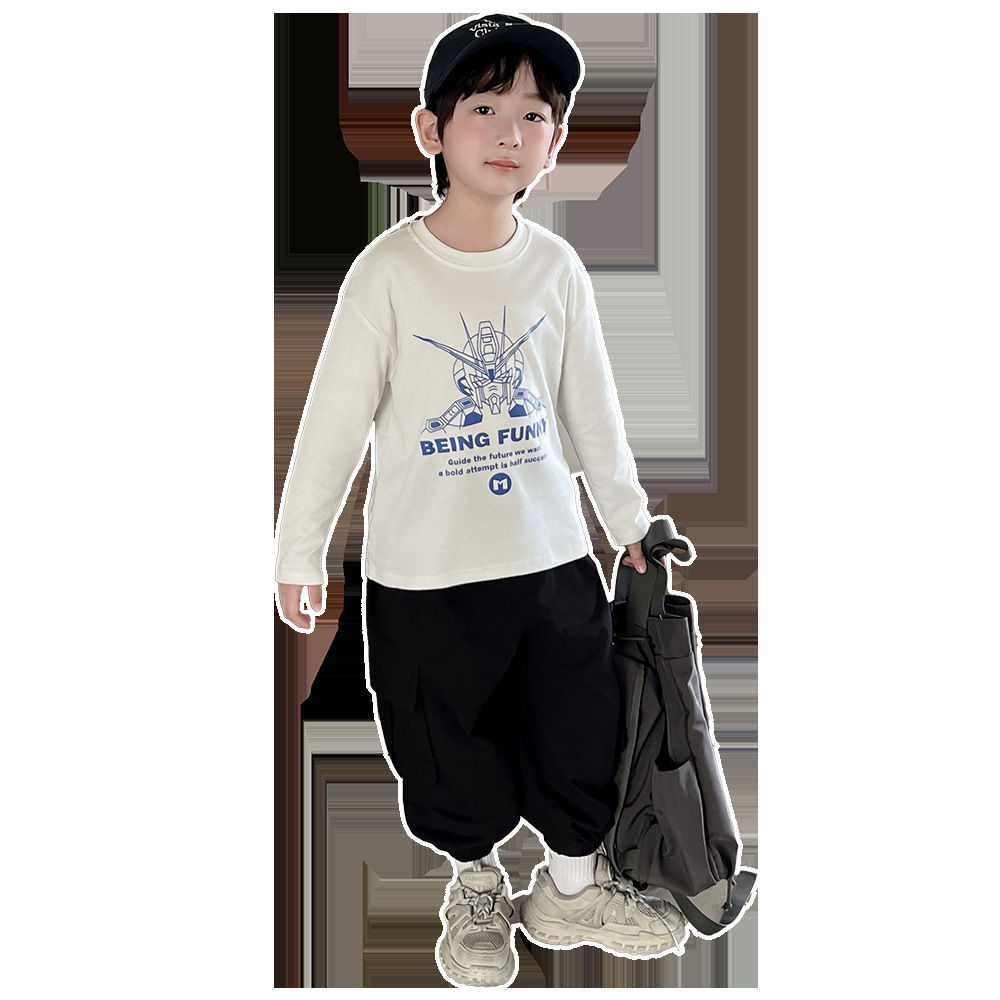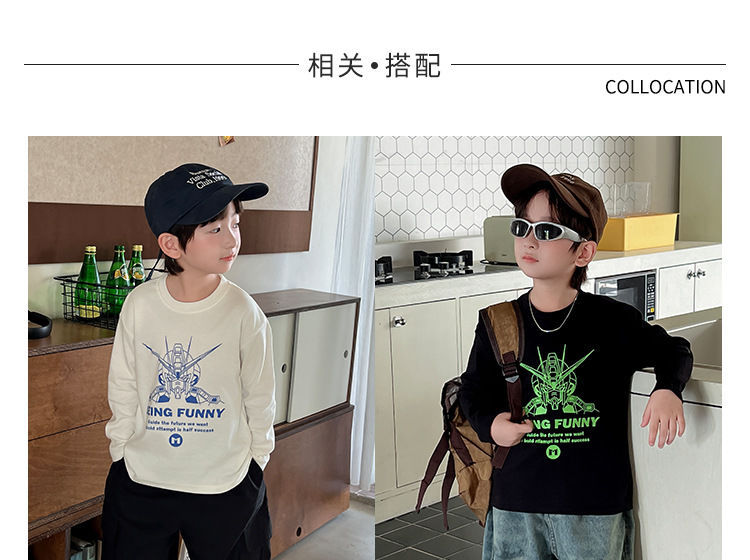 남학생 긴팔 티셔츠 2024 신상 아동복 가을착용 어린이 탑 중 · 대형 어린이 면 가을과 겨울베이스 셔츠 빛나다