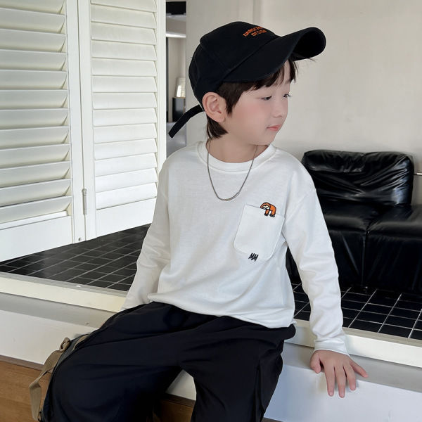 남학생 긴팔 티셔츠 2024 신상 아동복 가을착용 어린이 탑 중 · 대형 어린이 면 가을과 겨울베이스 셔츠 빛나다스토어 가기