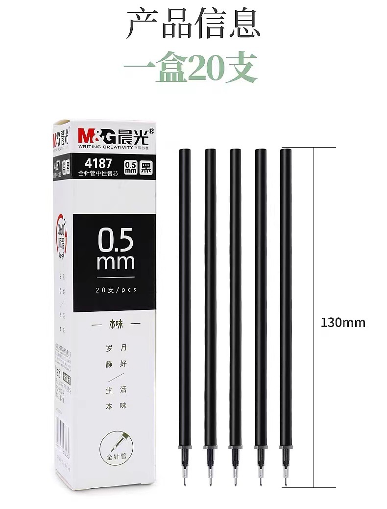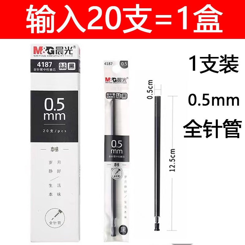 Chenguang Benwei 리필 유니버설 풀 바늘 튜브 0.5mm 학생 중립 리필 블랙 워터 리필 사무실 4187