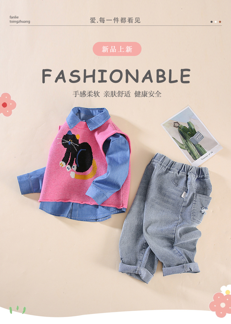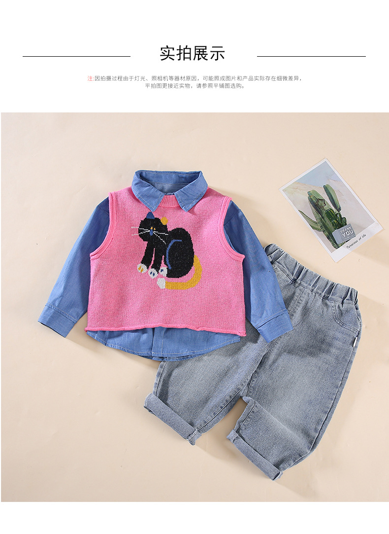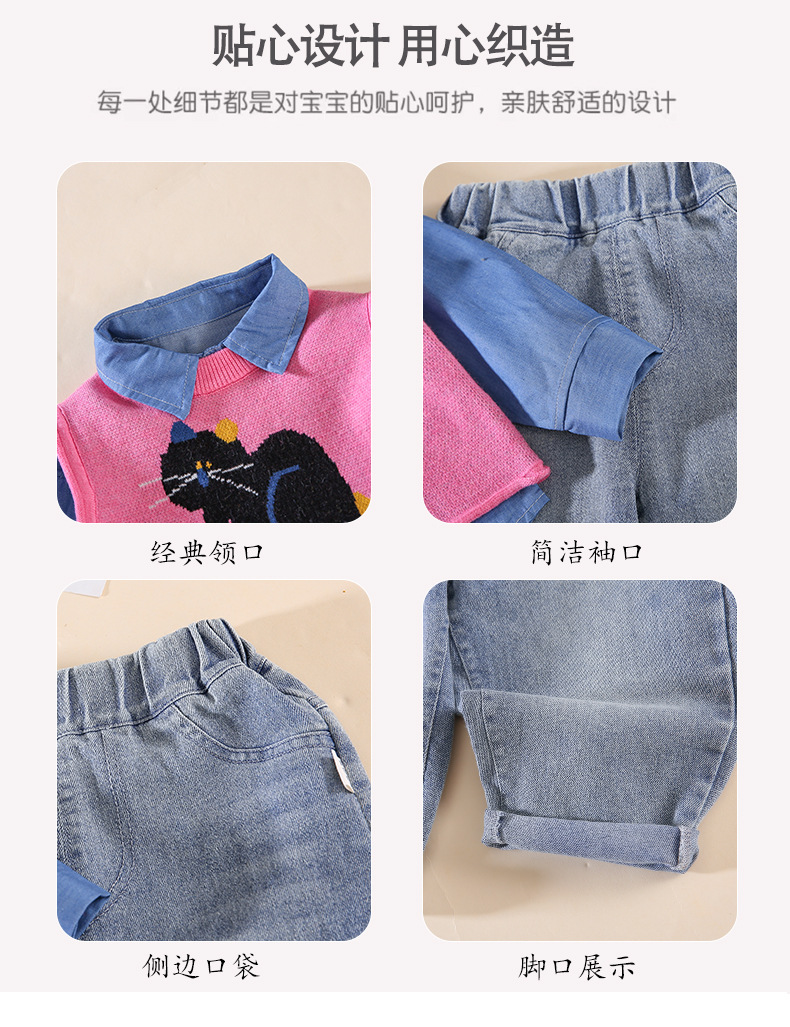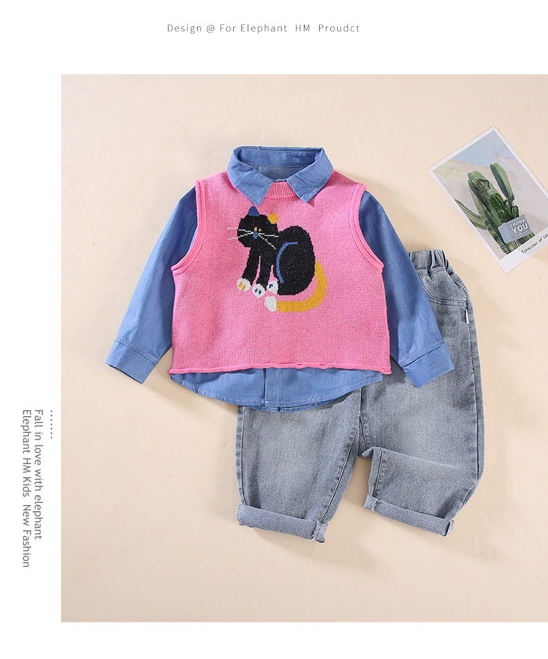 어린이 착용 소년 봄과 가을 세트 소년 아기 2024 가을 새로운 캐주얼 니트 셔츠 3 피스 세트 트렌디스토어 가기