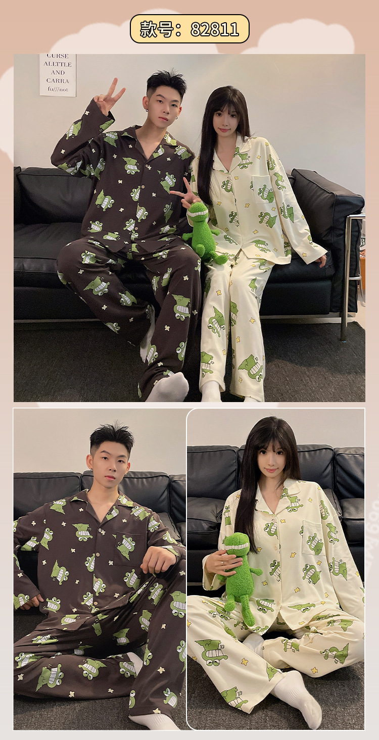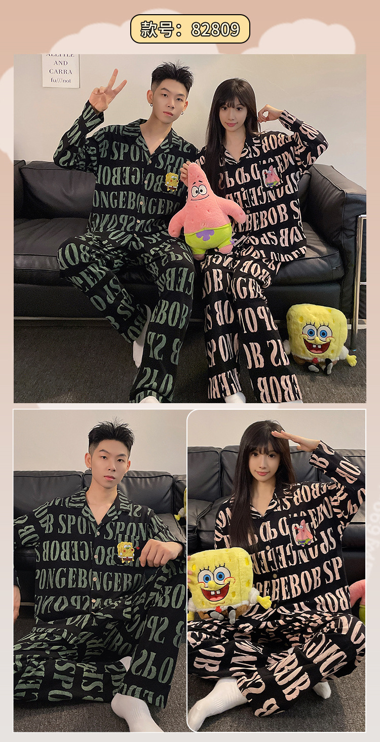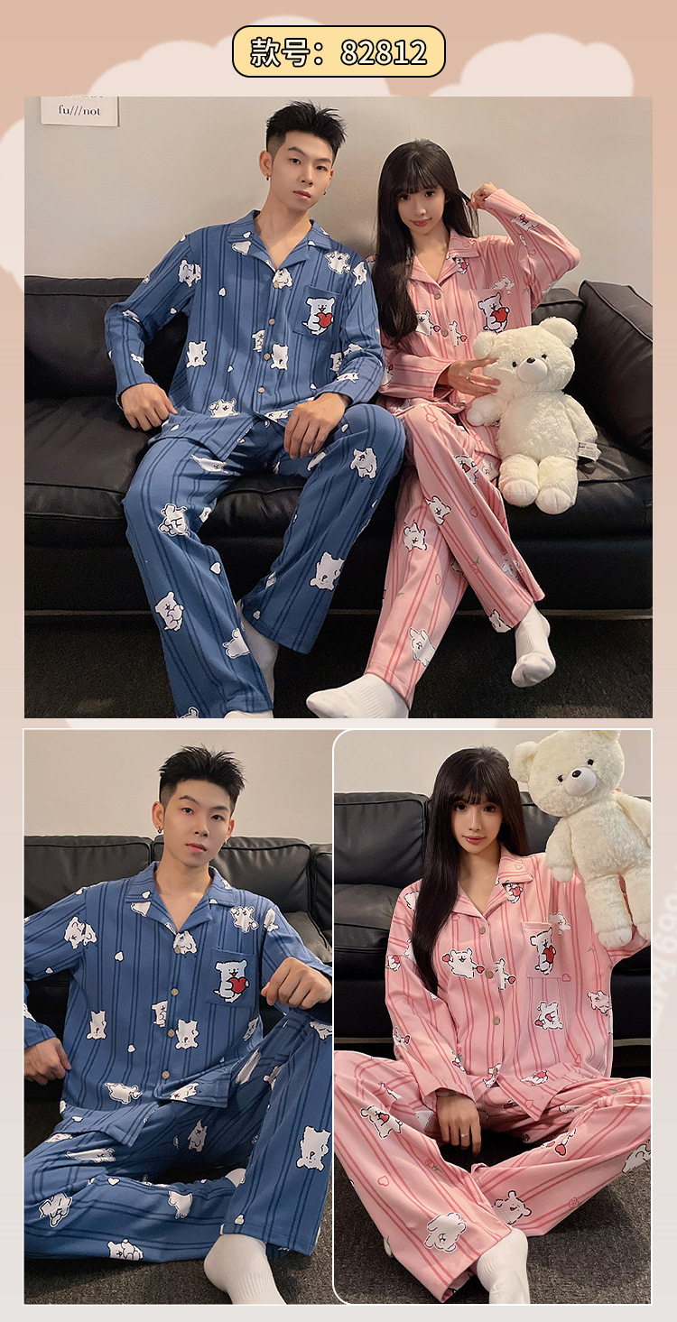 2024 새로운 커플 잠옷 귀여운 여성의 봄과 가을 긴 소매 바지 남자 플러스 사이즈 홈 옷 세트 여름 하이 엔드 감각스토어 가기