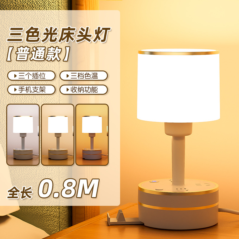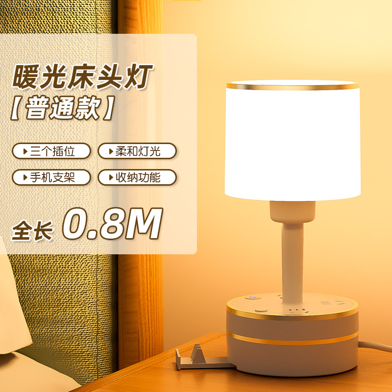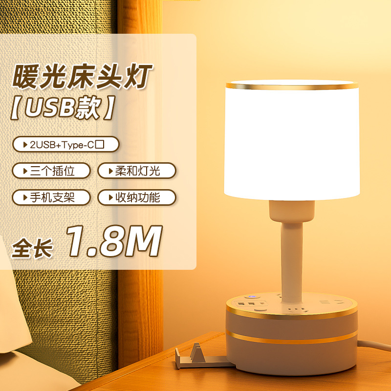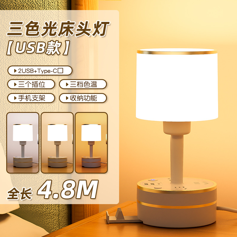 [교체 가능한 전구] 소켓 통합 테이블 램프 LED 기숙사 침실 플러그인 USB가있는 침대 옆 램프 스토리지 와이어