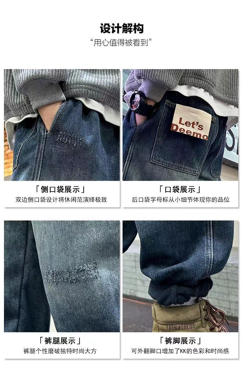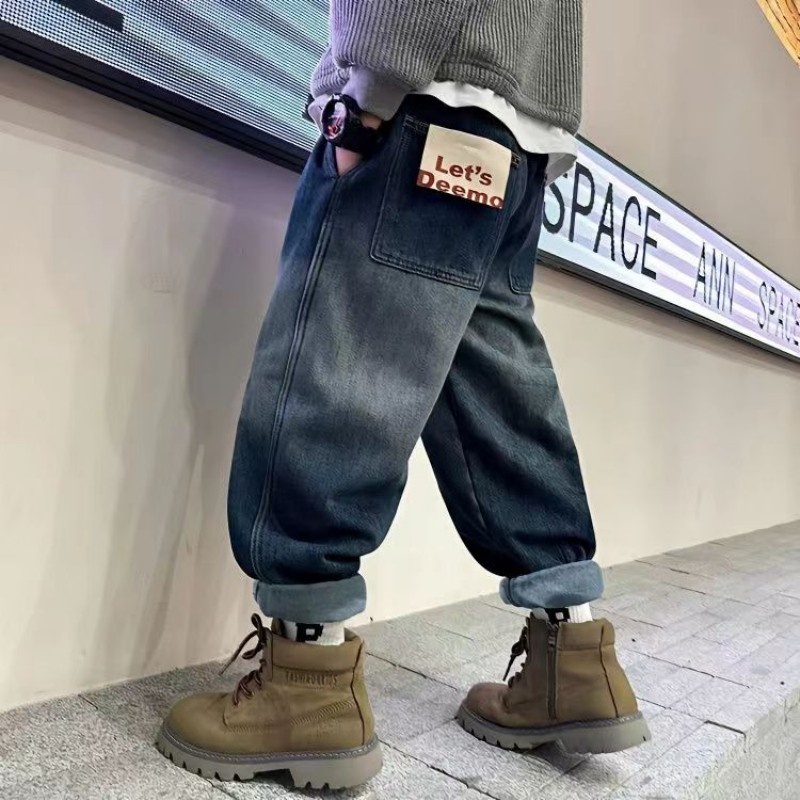 어린이 소년 바지 봄과 가을 2024 새로운 가을 중첩 어린이 가을 바지 소년 캐주얼 청바지스토어 가기