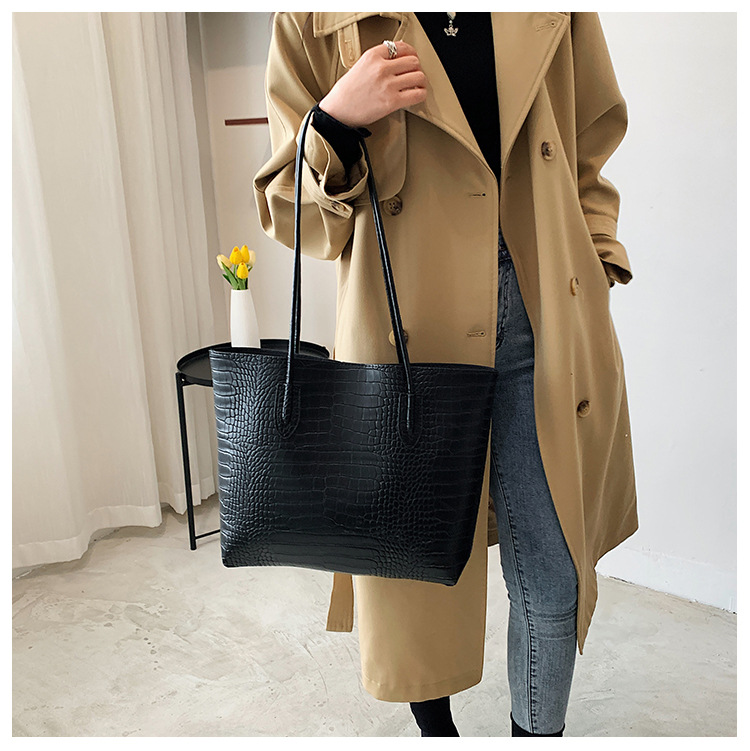 대용량 토트 백 크로스 보더 새로운 가을, 겨울 여성 가방 복고풍 어깨 토트 백 고급 여성 통근 어깨 가방