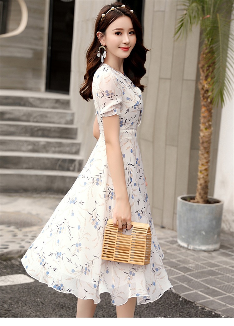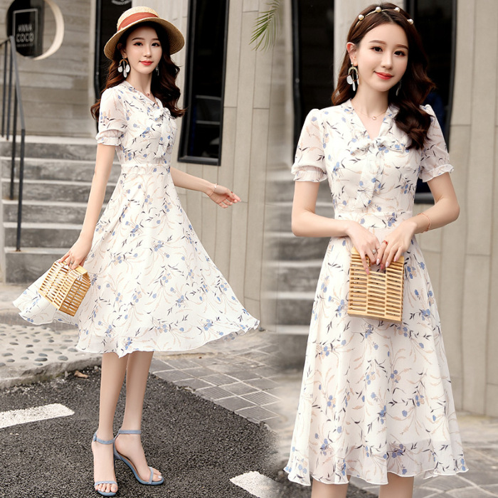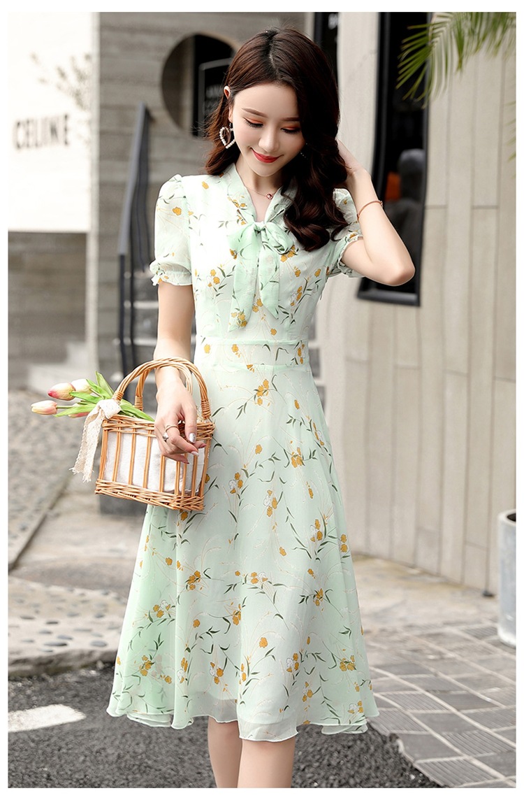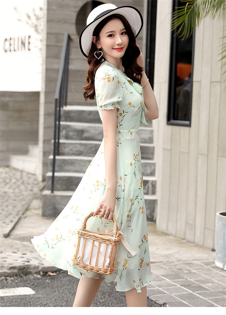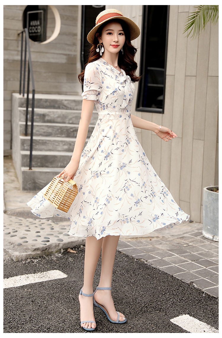 달콤한 패션 작은 꽃 활 레이스 업 원피스 요정 여름 프랑스 틈새 반팔 인쇄 슬림 룩 원피스스토어 가기