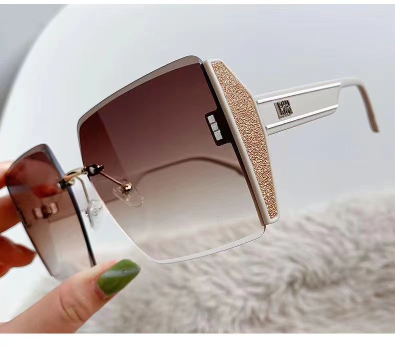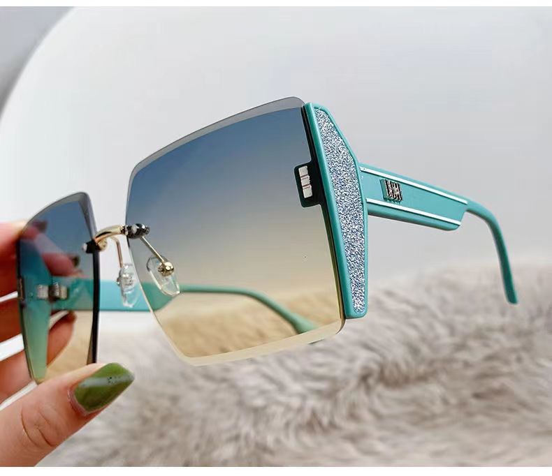 하이 엔드 센스 스퀘어 프레임리스 컷 엣지 선글라스 사이버 레드 성격 트렌디 쿨 선글라스 여성의 큰 얼굴 슬리밍 유행 눈스토어 가기