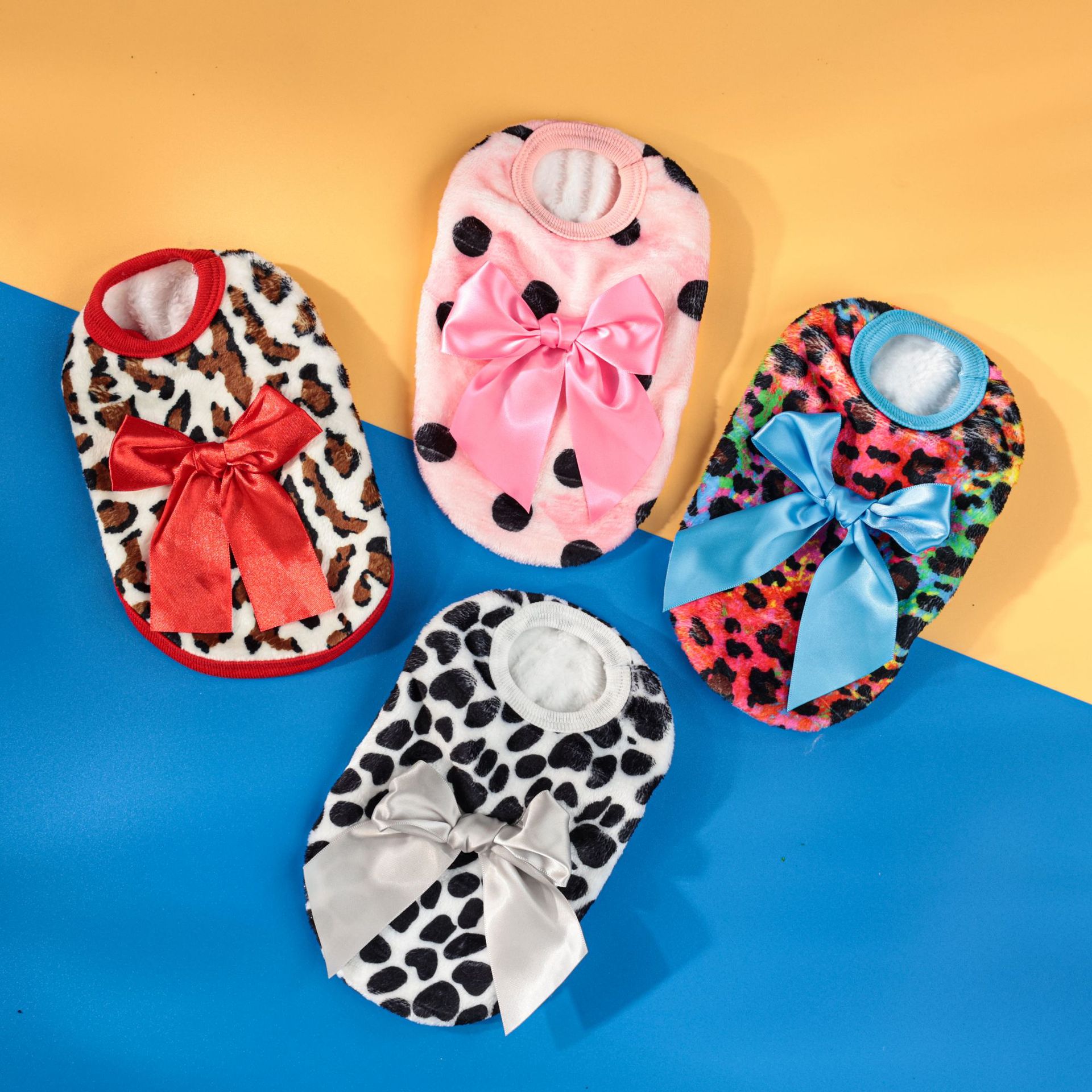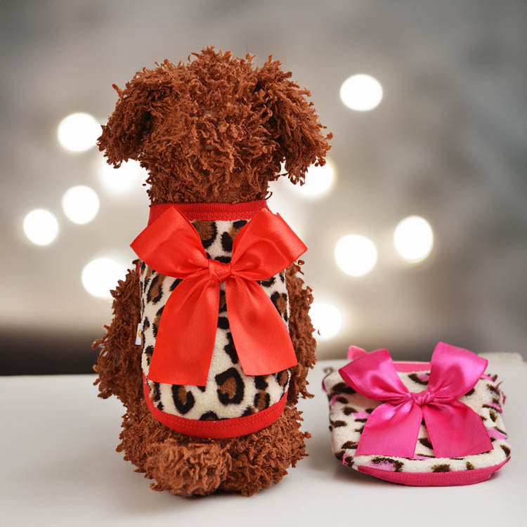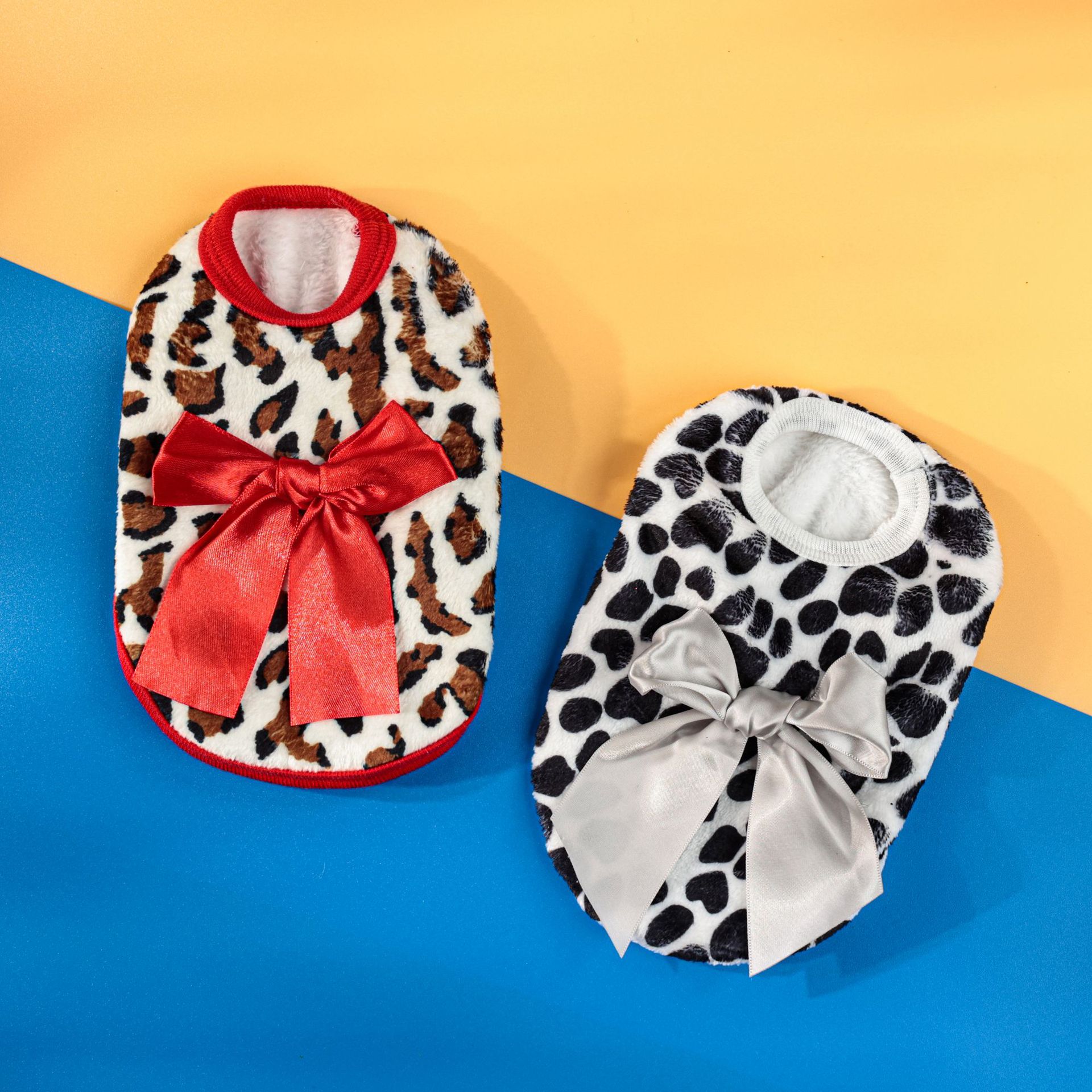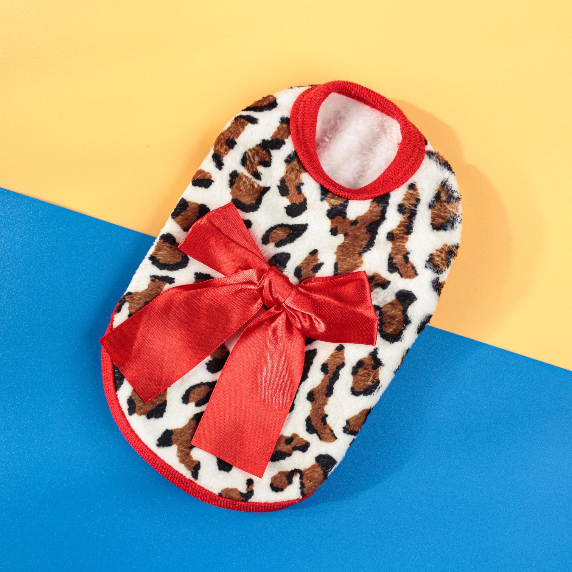 우유 개 축제 산호 양털 애완 동물 옷 개 레오파드 무늬 가을과 겨울 우유 개 옷 테디 강아지 크리스마스 휴가 옷