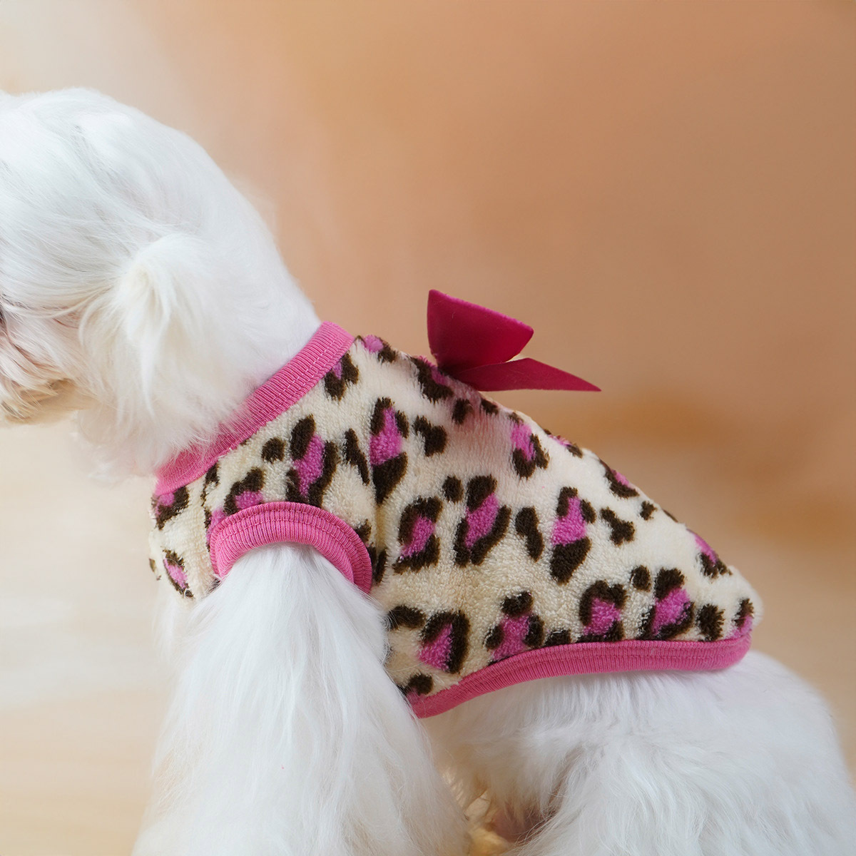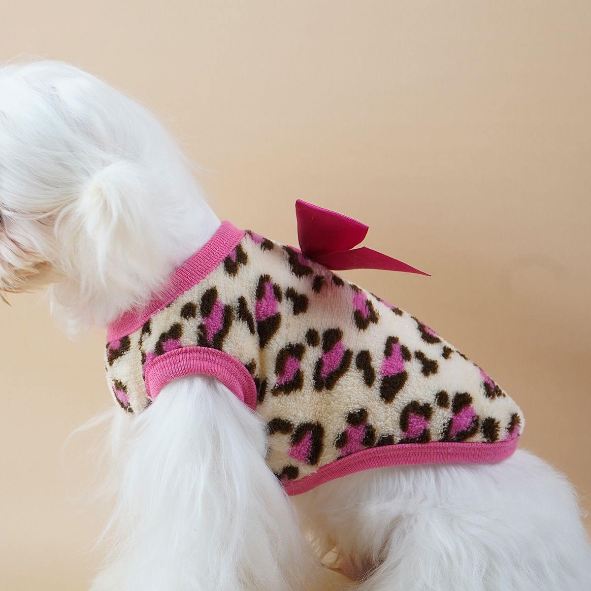 우유 개 축제 산호 양털 애완 동물 옷 개 레오파드 무늬 가을과 겨울 우유 개 옷 테디 강아지 크리스마스 휴가 옷스토어 가기