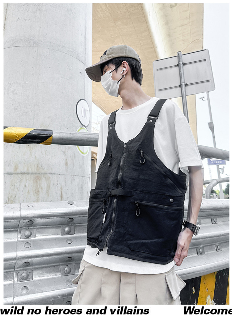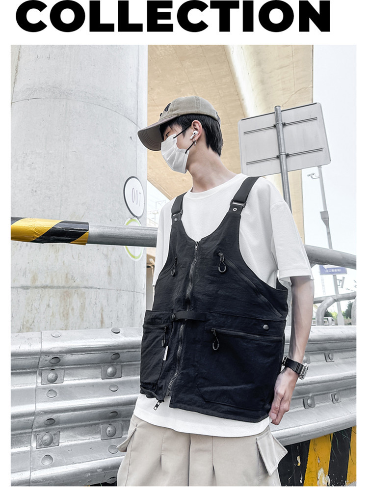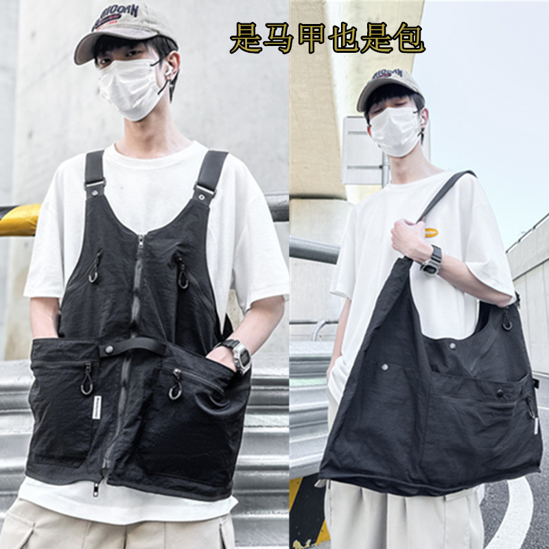 [스타 같은 모델] 가변 어깨 가방 조끼 가방 멀티 포켓 대용량 다기능 툴링 조끼 배낭