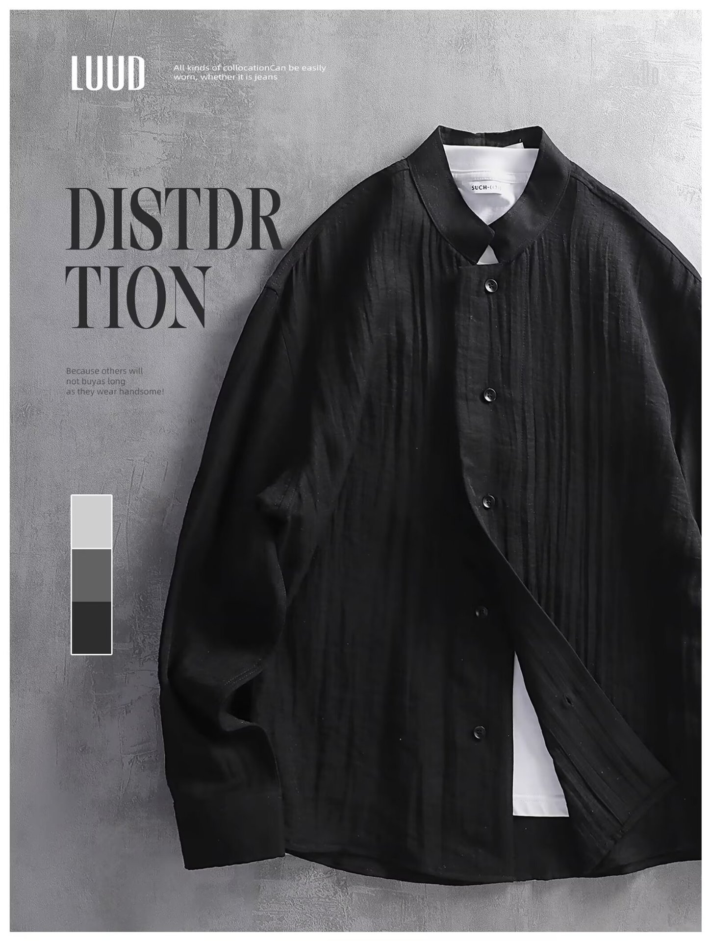 단색 질감 긴 소매 셔츠 남자의 새로운 틈새 느슨한 캐주얼 줄무늬 셔츠 고급 복고풍 탑스토어 가기