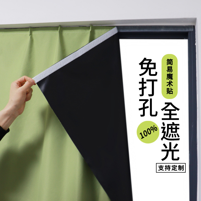 2024 새로운 풀 블랙 아웃 커튼 그늘 옷감 침실 완성 된 발코니 단열 태양 보호 창 간단한 커튼 펀치 프리스토어 가기