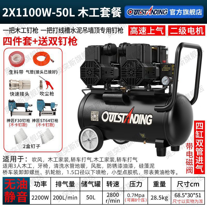 Otus 플래그십 스토어 공기 펌프 공기 압축기 오일이없는 조용한 목공 스프레이 페인트 공기 펌프 작은 공기 압축기 220V스토어 가기