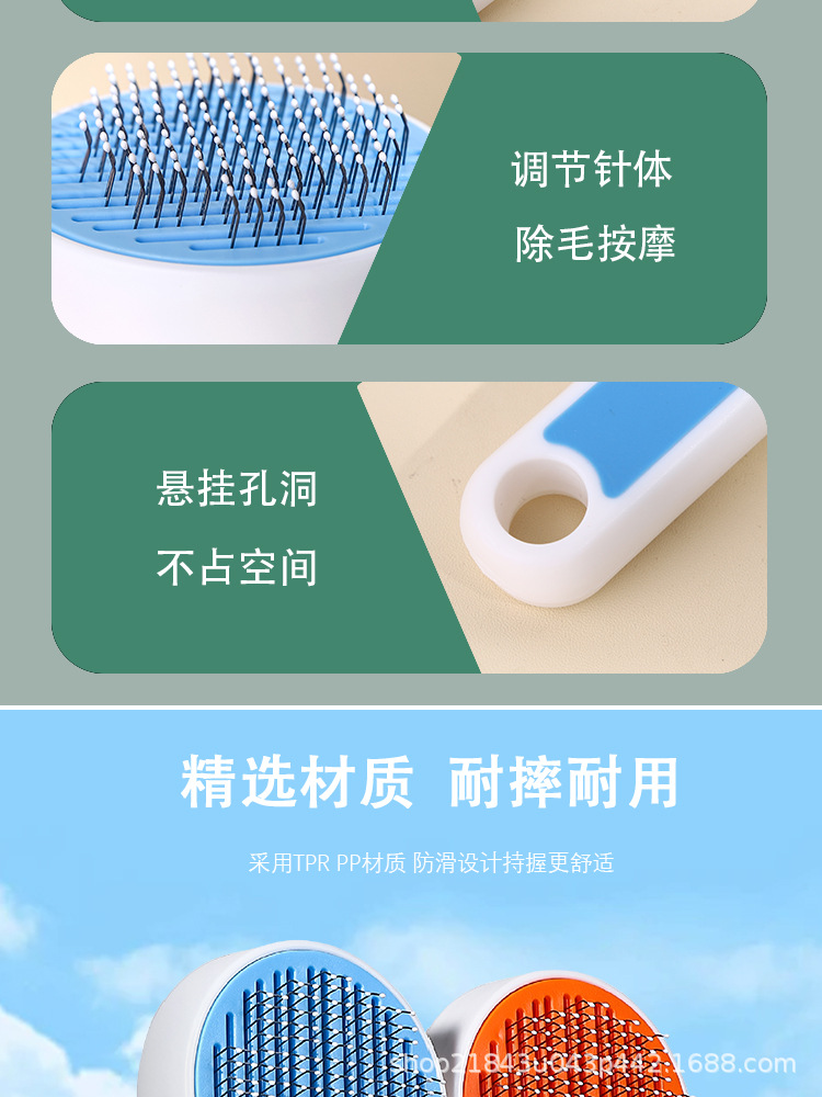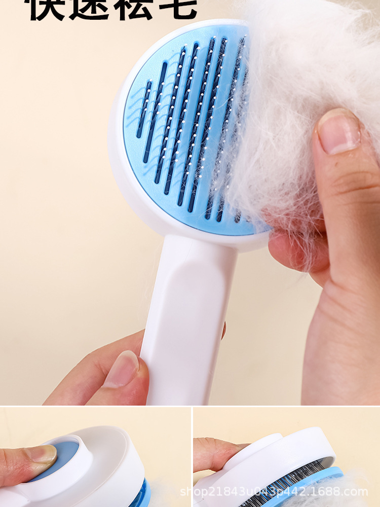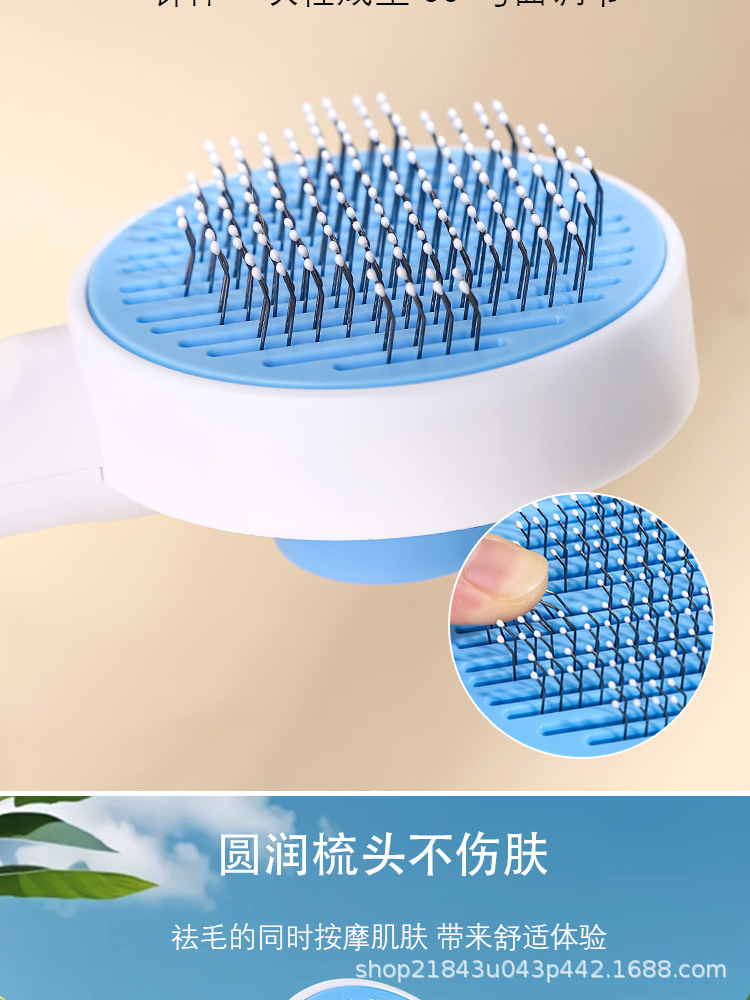 소스 제조 업체 애완 동물 머리 제거 빗 고양이와 개 머리 제거 브러시 고무 머리 강철 바늘 마사지 빗 원 키 머리 제거 자기 청소 빗스토어 가기
